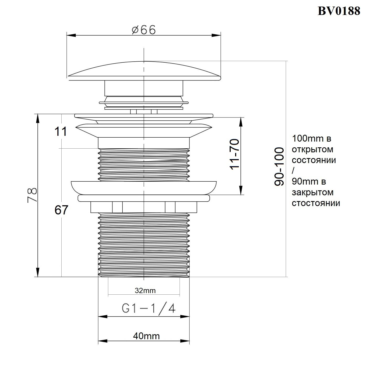 Чёрный донный клапан для раковины без перелива предназначен для закрытия сливного отверстия в нижней части раковины и экономии воды. Он придаёт раковине красивый вид и прост в обслуживании. Донный клапан BOND BV0188 с механизмом Push-Open открывается и закрывается простым нажатием пальца на крышку. Корпус изделия изготовлен из латуни, что гарантирует его высокое качество и длительный срок службы. Подходит ко всем раковинам BOND без перелива, а также всем другим раковинам без перелива, имеющим стандартное отверстие.