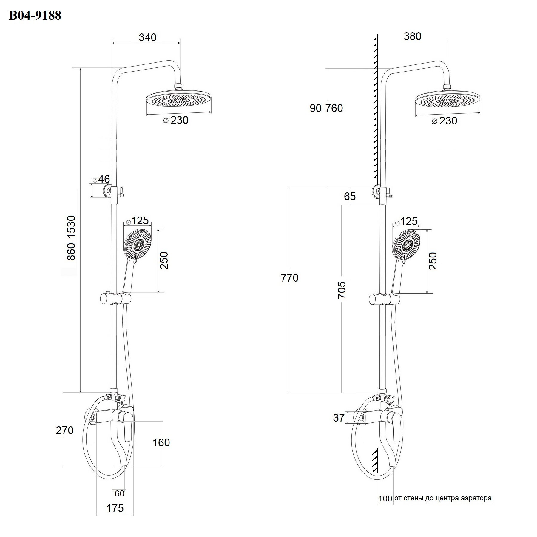 | Габариты верхнего душа | 230 |