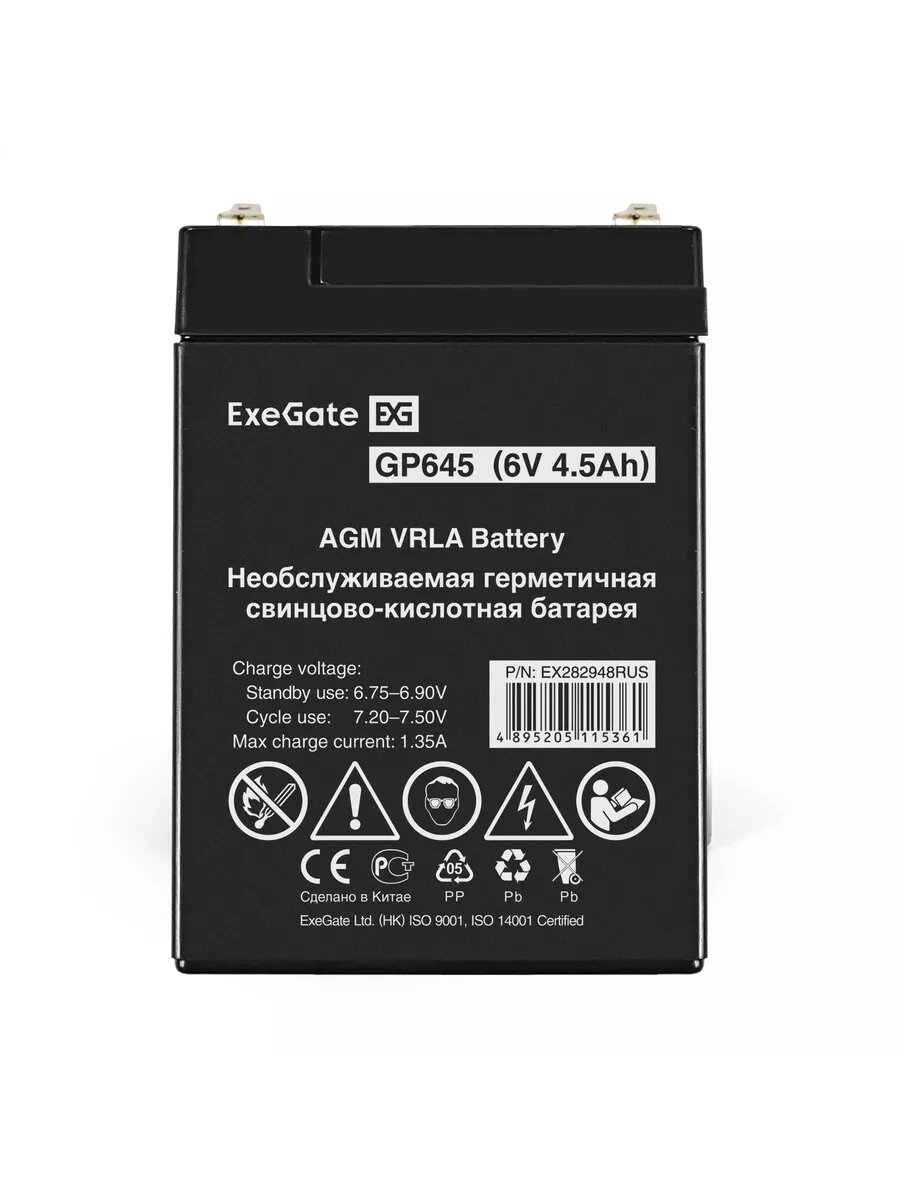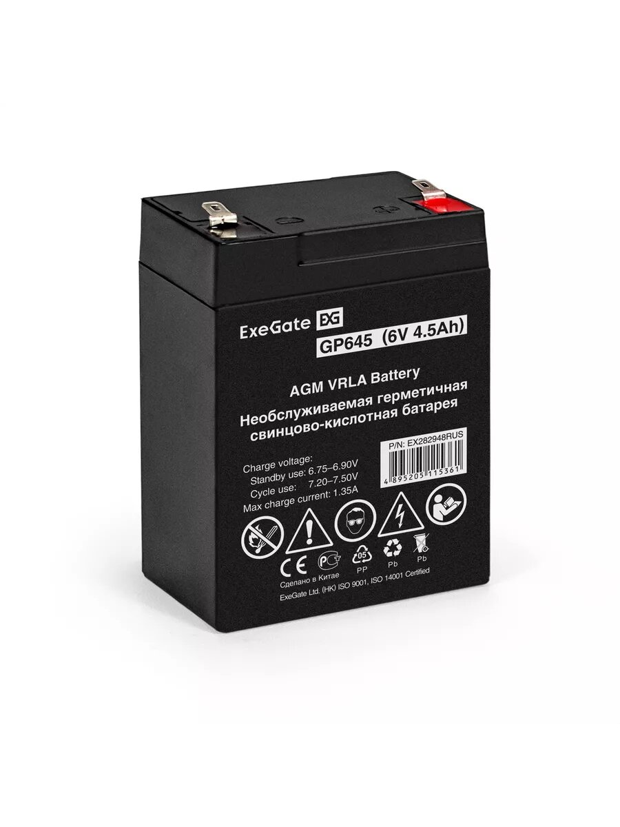 Батарея аккумуляторная Exegate EX282948RUS (6V 4.5Ah клеммы F1) GP645