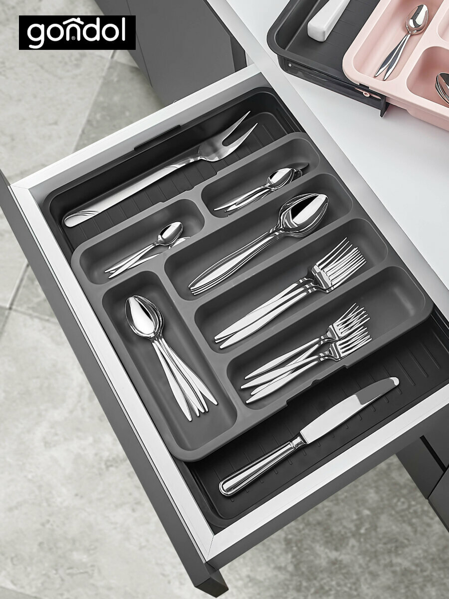 Лоток для столовых приборов раздвижной розовый GONDOL G-87-P