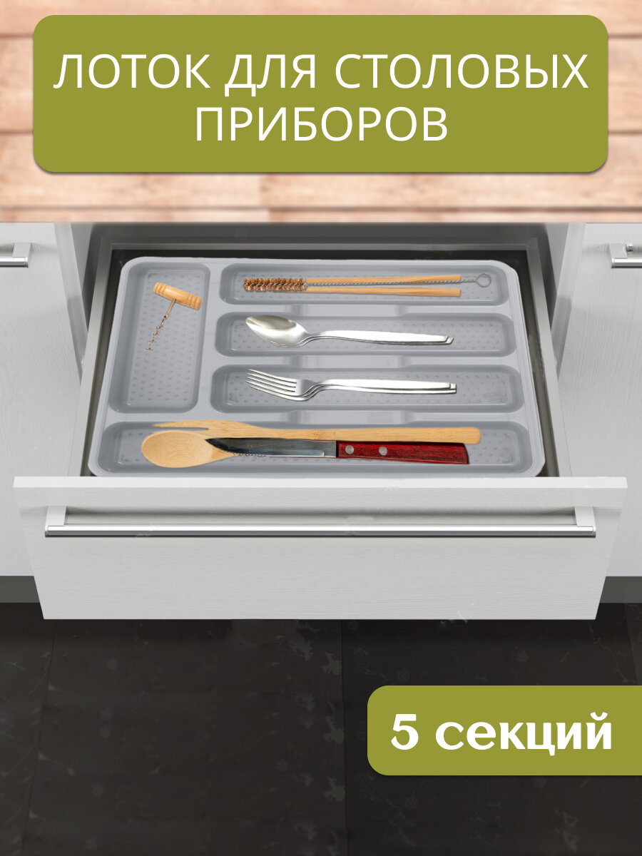 Лоток для столовых приборов HOBBY LIFE 26,5х34х4,5см 5 секций пластик серый. Лоток для столовых приборов - изготовлен из высококачественного пищевого пластика. Лоток имеет 5 секций.