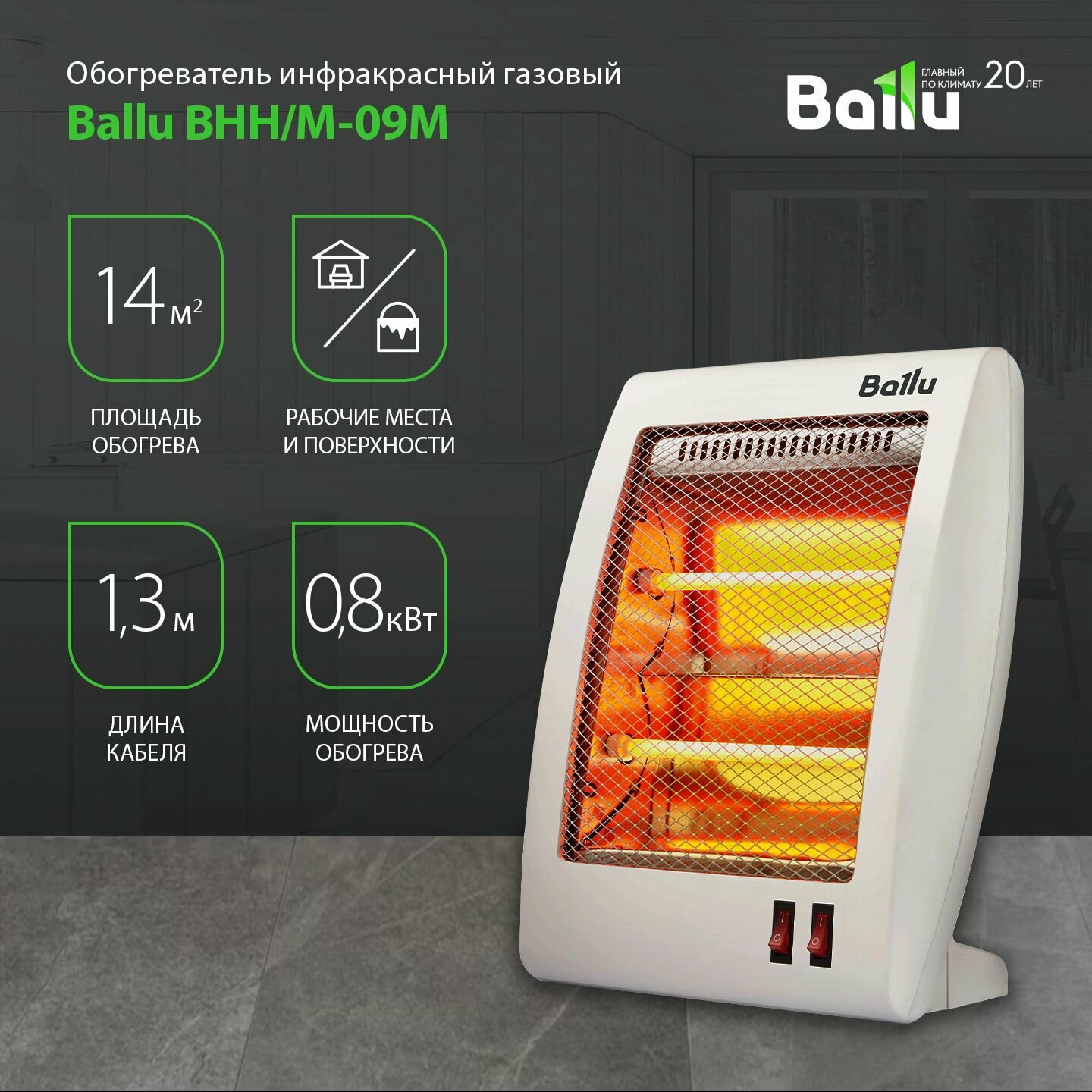 обогреватель инфракрасный BALLU BHH/M 09M 800Вт (BHH/M-09M)
