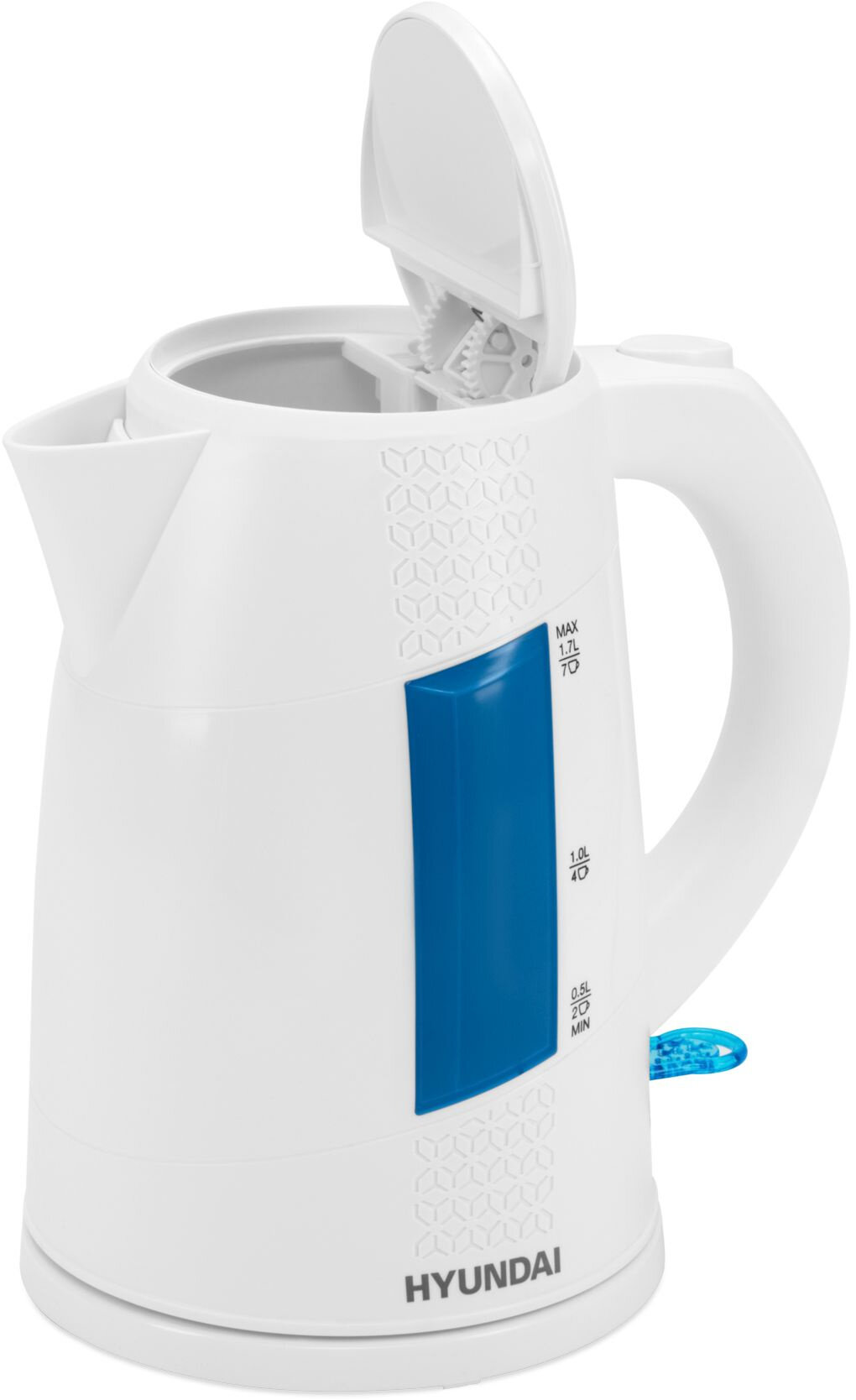 Чайник электрический Hyundai HYK-P2407 белый/голубой, объём 1.7л, мощность 2200Вт, материал корпуса: пластик