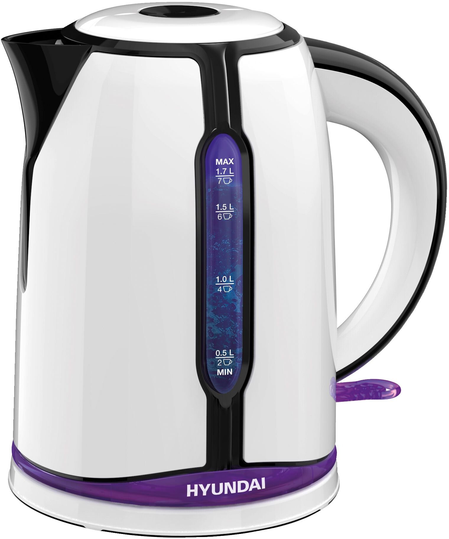 Чайник электрический Hyundai HYK-P3405 белый/черный, объём 1.7л, мощность 2200Вт, материал корпуса: пластик