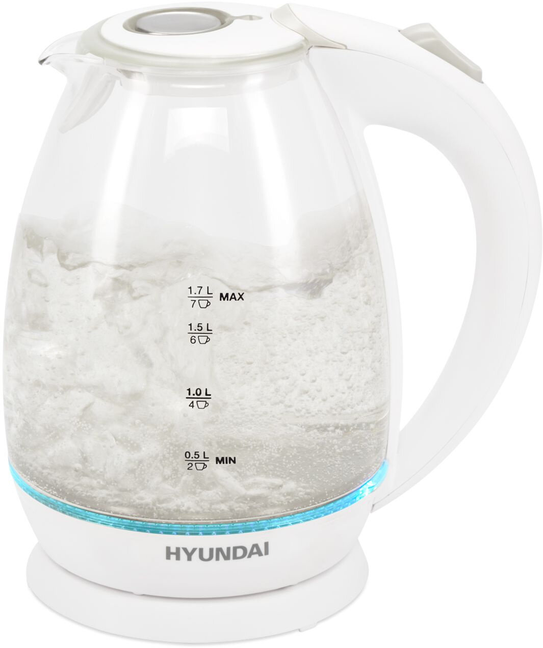 Чайник электрический Hyundai HYK-G2409 белый/серебристый стекло