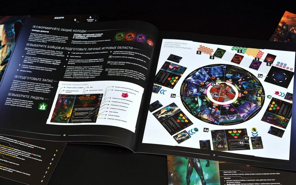 - Первый этап. Выберете карты. На руку нужно взять карты, содержащие в себе по два действия. Разложите карты так, чтобы на каждой осталось видимым только то действие, которое вы хотите совершить.