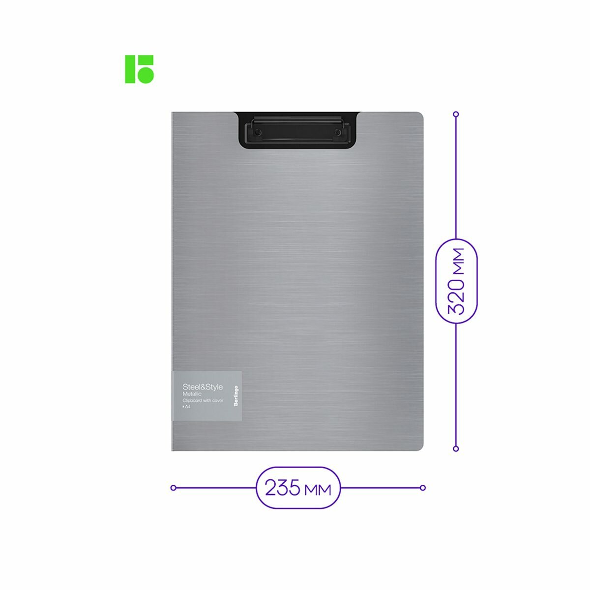 Папка-планшет с зажимом Berlingo "Steel&Style" A4 пластик (полифом) серебристый металлик (PPf_93102)