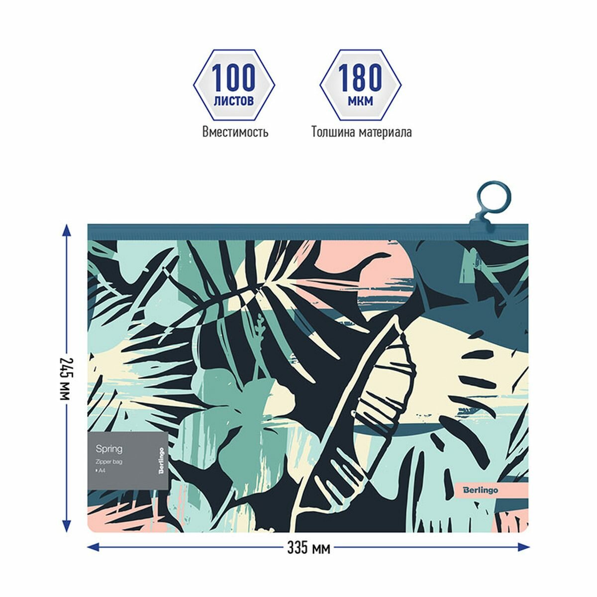Папка-конверт на молнии Berlingo "Spring" A4 180 мкм с рисунком (ZBn_A4141)