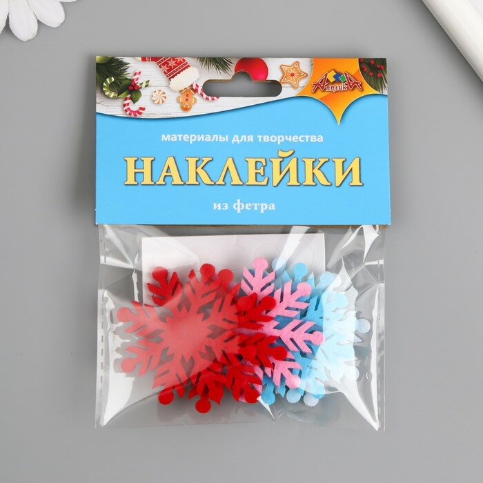 Набор для творчества. Наклейки из фетра. В наборе фигуры из текстильного материала, а также основа из двухстороннего скотча. Упаковка - ПЭТ пакет с картонным европодвесом.