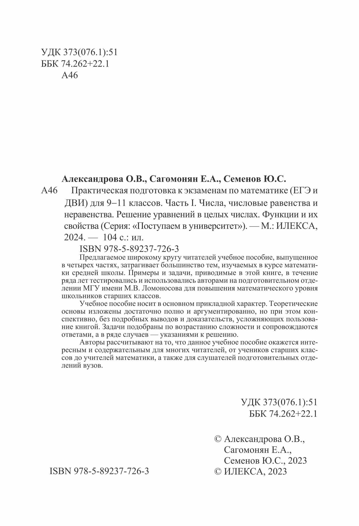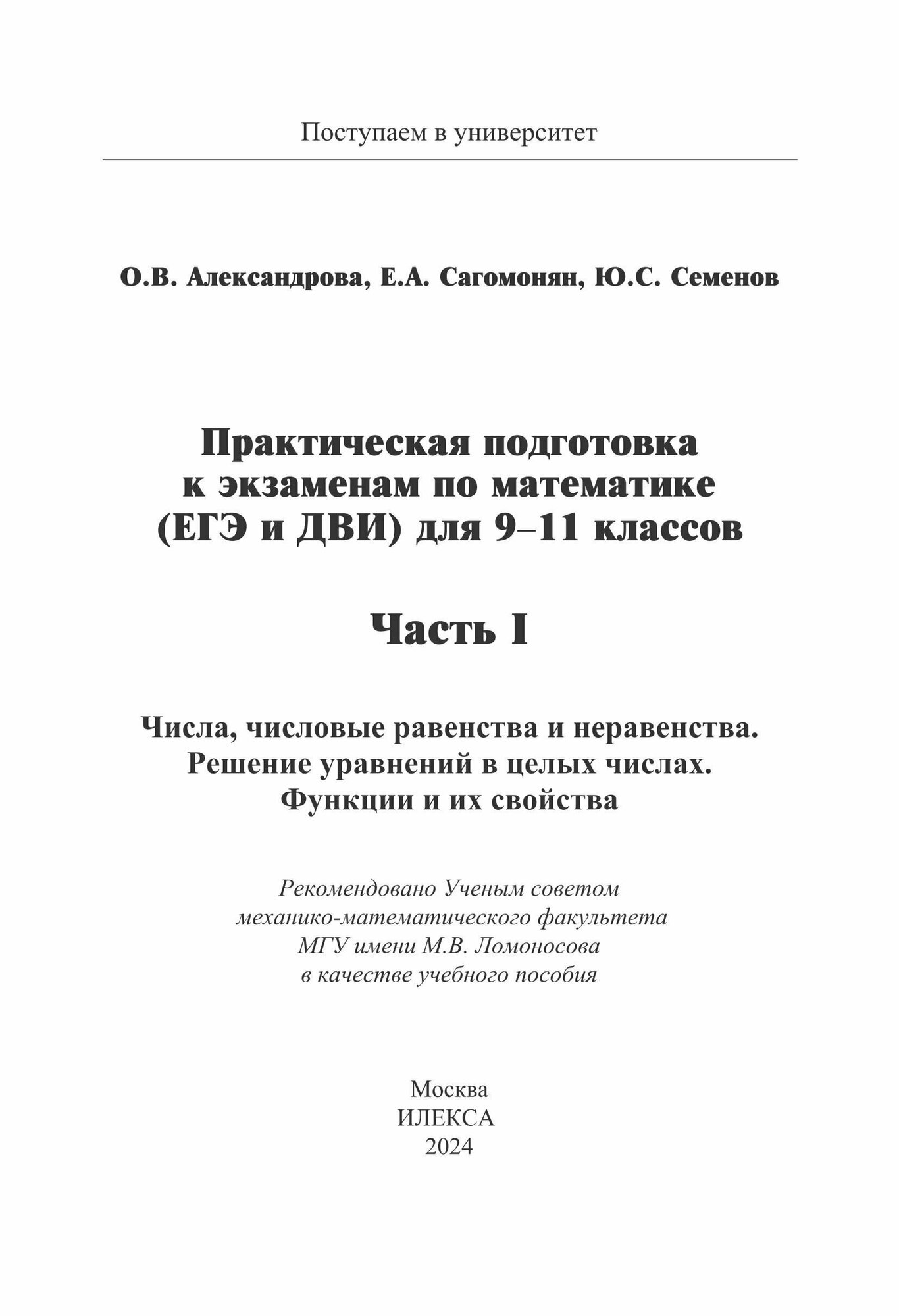 Математика. 9-11 классы. Практическая подготовка к экзаменам. Часть 1. Числа числовые равенства (Александрова Ольга Владимировна, Сагомонян Елена Артуровна, Семенов Юрий Станиславович); Илекса, 2024