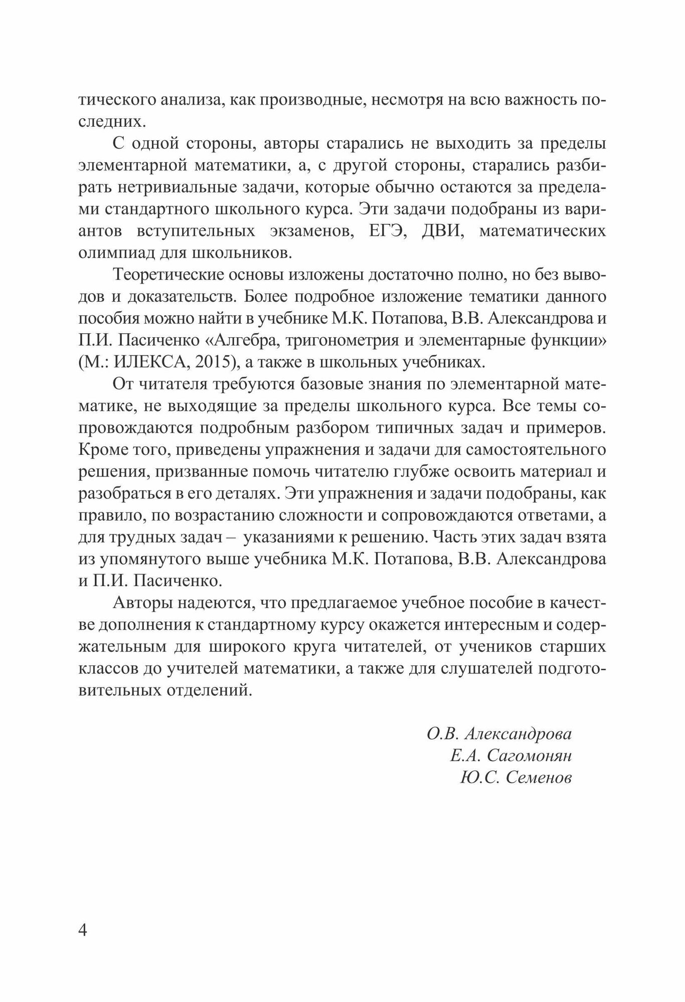 Авторы рассчитывают на то, что данное учебное пособие окажется интересным и содержательным для многих читателей, от учеников старших классов до учителей математики, а также для слушателей подготовительных отделений вузов.