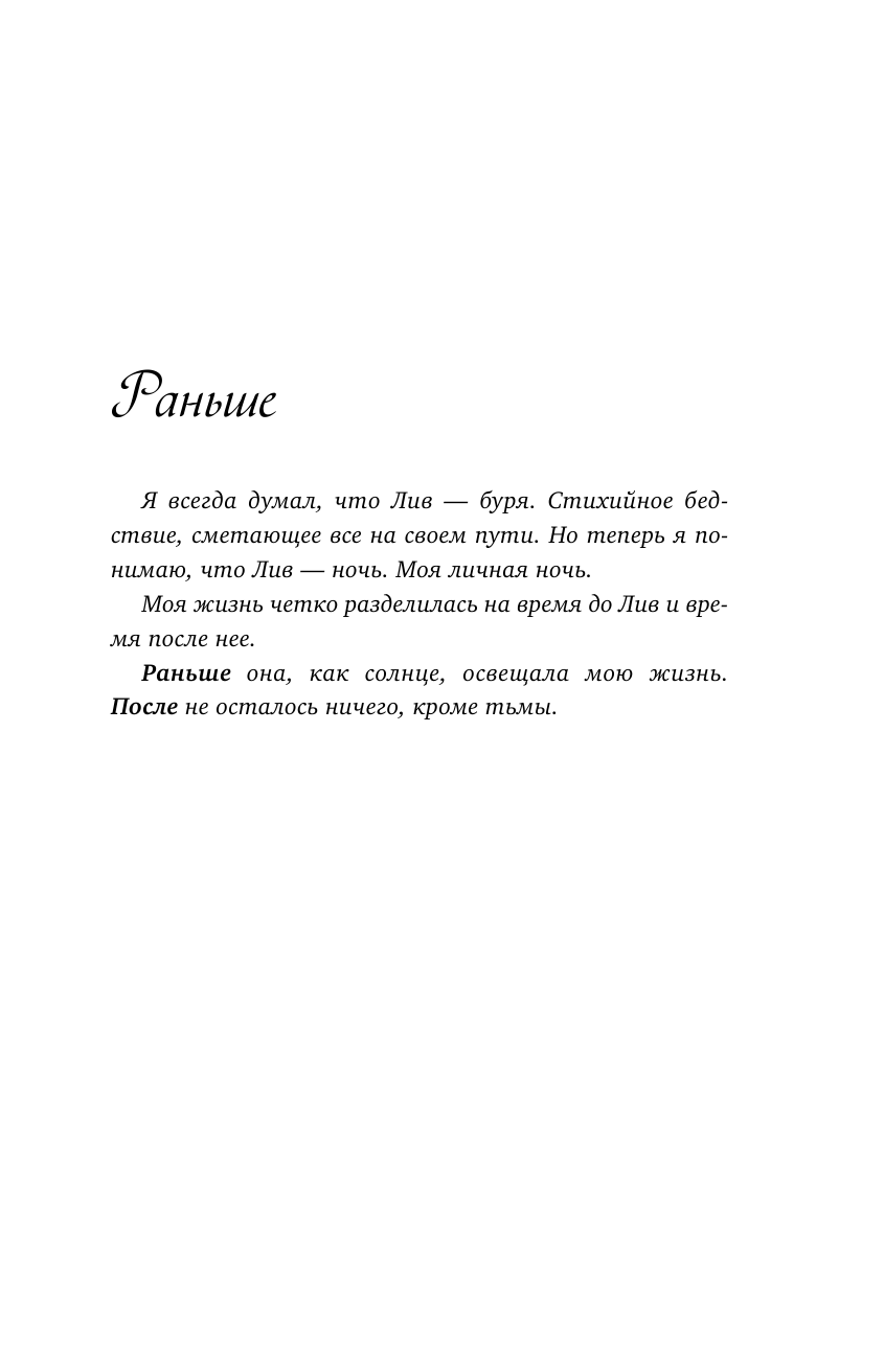 «Я всегда думал, что Лив — буря. Стихийное бедствие, сметающее все на своем пути. Но теперь я понимаю, что Лив — ночь. Моя личная ночь».