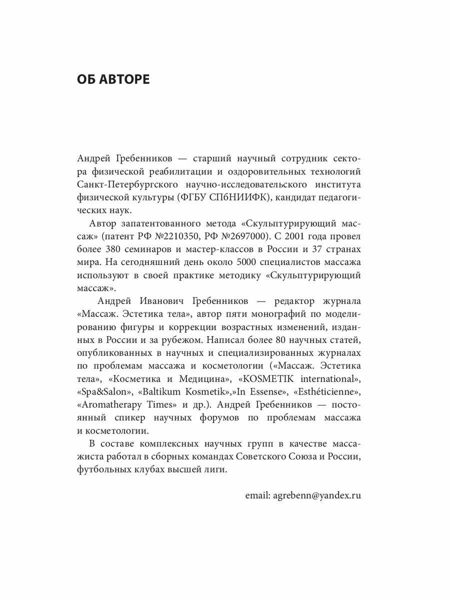 Автор книги Андрей Гребенников расскажет о секретах скульптурирующего массажа, который скорректирует и улучшит форму тела и положительно повлияет на состояние здоровья.