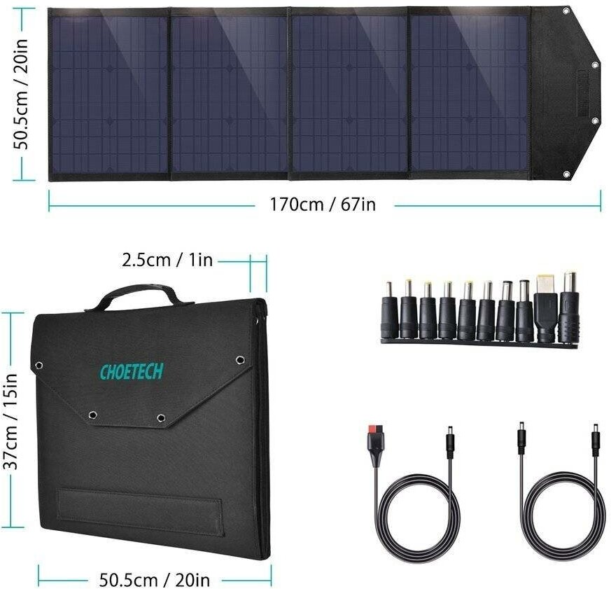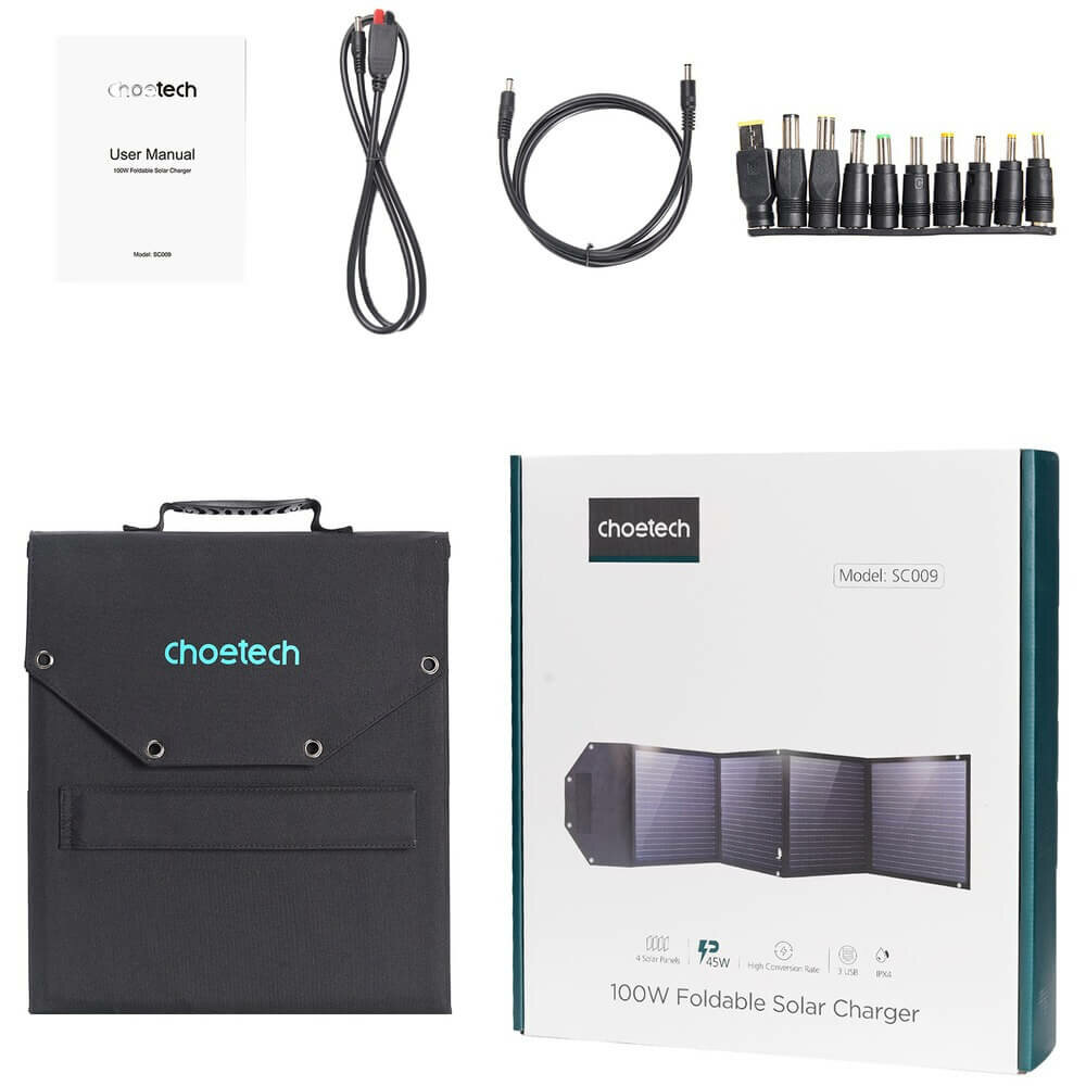 | мощное, чтобы заряжать ваши камеры, портативные колонки, фонари и другие устройства для кемпинга выберите складную солнечную панель Choetech 100W SC009 с характеристиками |