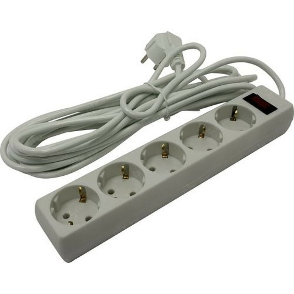 Удлинитель Exegate EX279359RUS (5 евророзеток с заземлением 5м защита от перегрузки выключатель с подсветкой белый) EC-5-5W