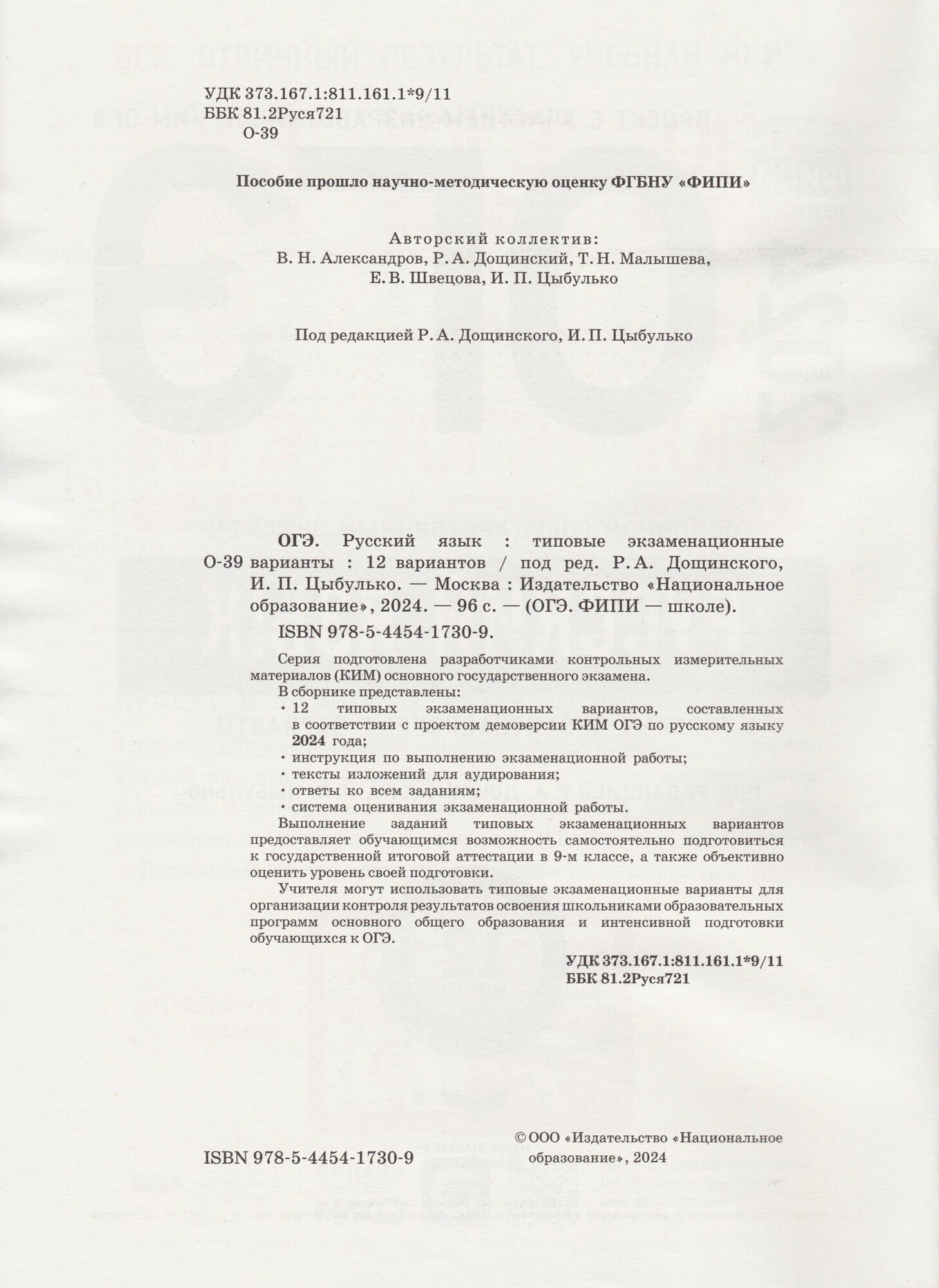 ОГЭ-2024. Русский язык: типовые экзаменационные варианты: 12 вариантов (Дощинский Роман Анатольевич, Цыбулько Ирина Петровна, Малышева Т. Н.); Национальное образование, 2023