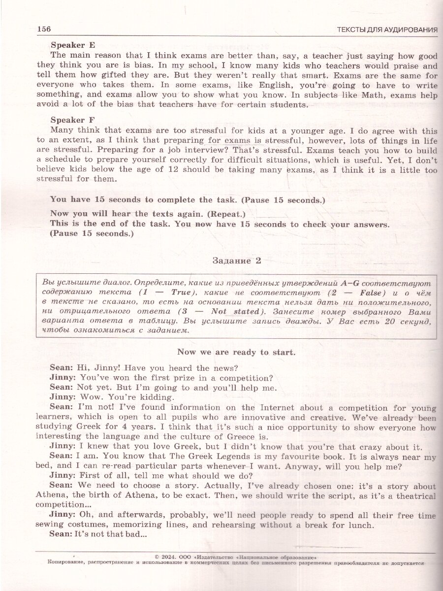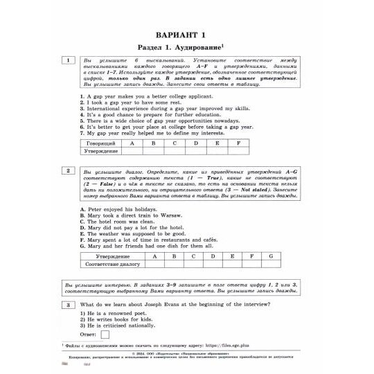 • инструкции по выполнению экзаменационной работы (письменная и устная части);