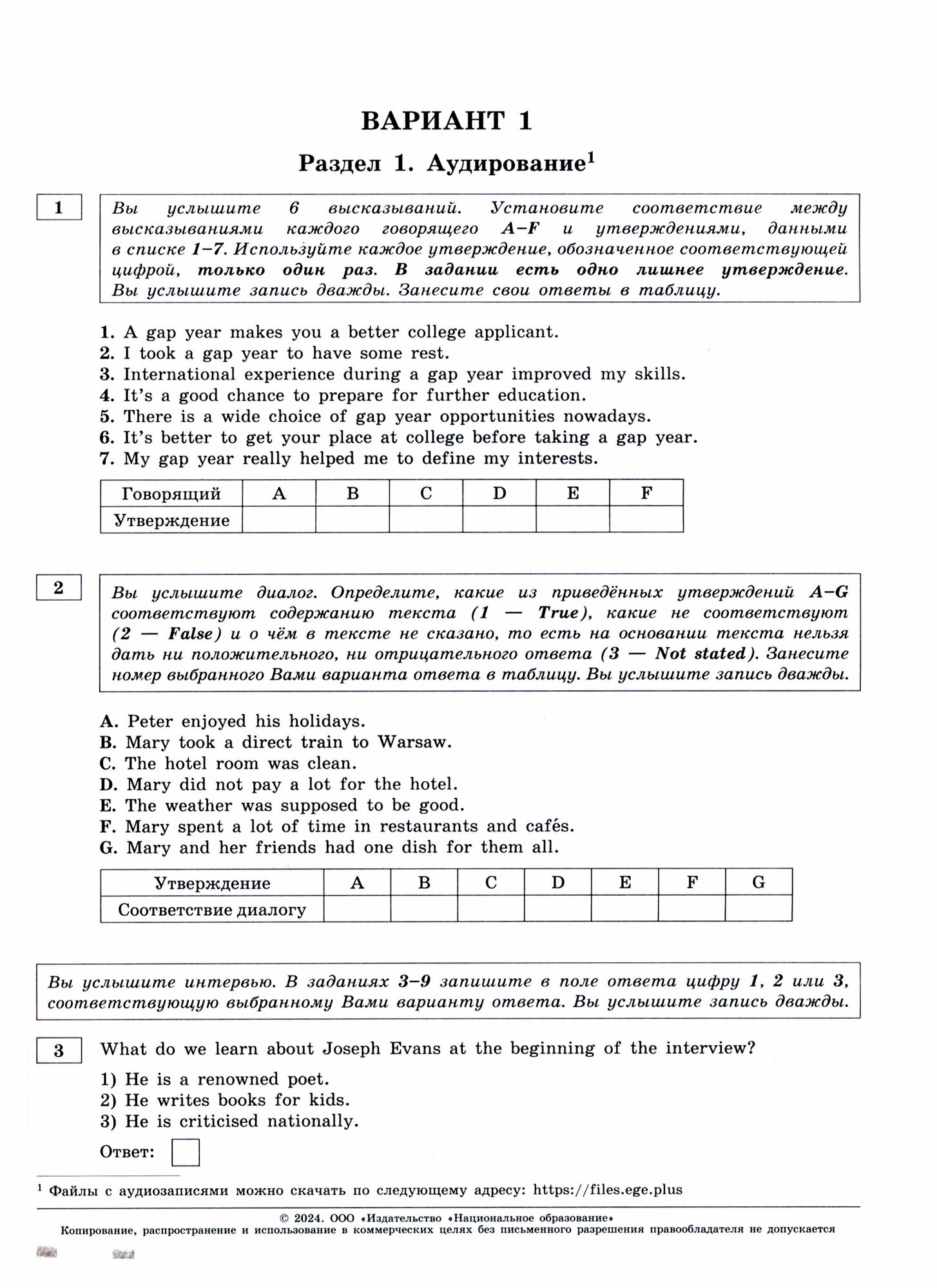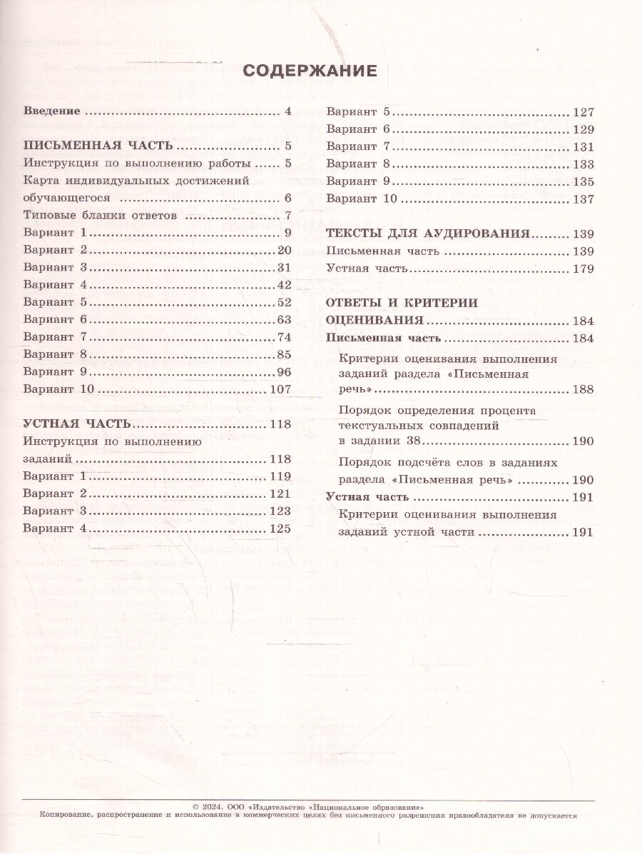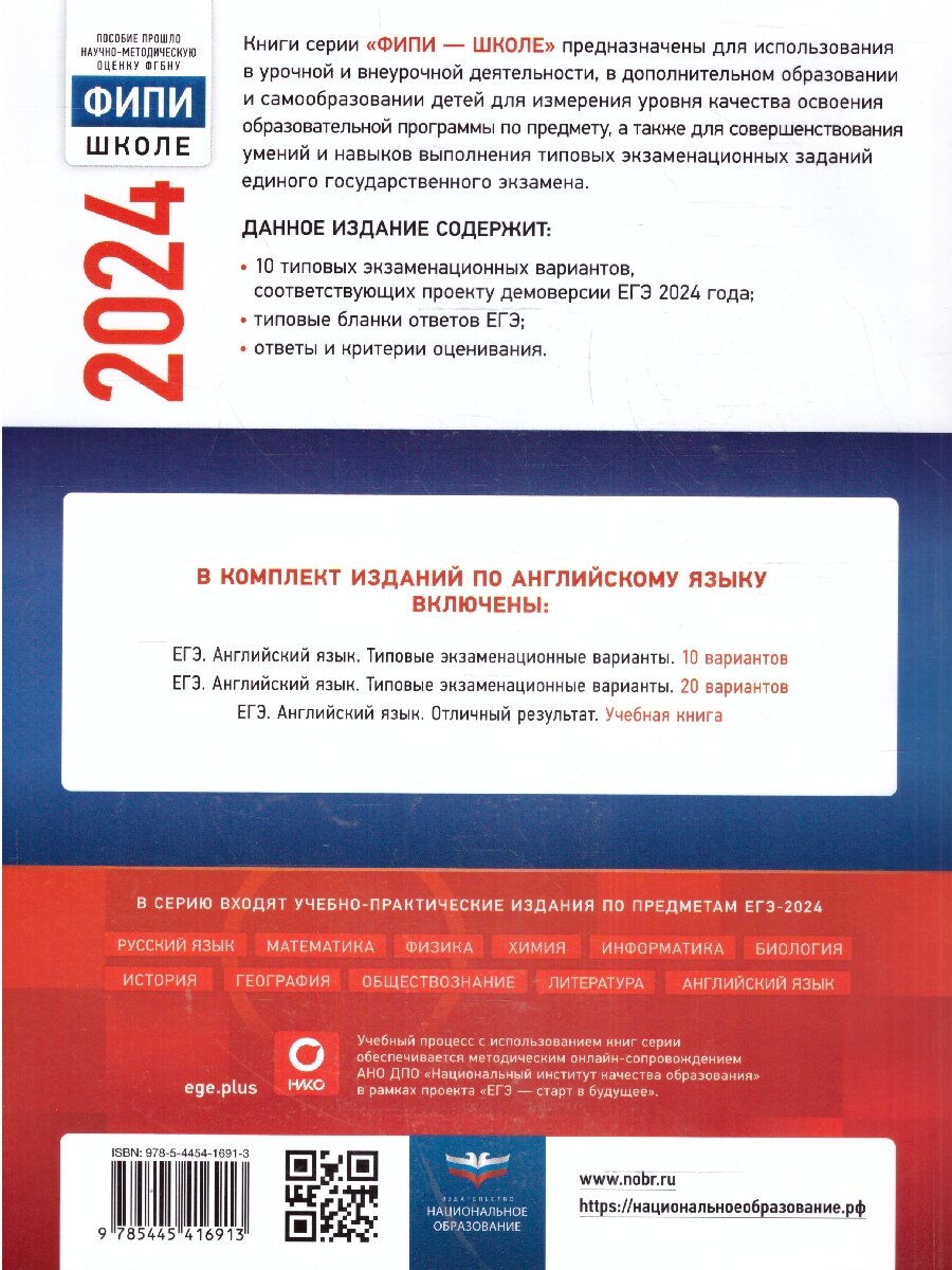 • 10 типовых экзаменационных вариантов, составленных в соответствии с проектом демоверсии КИМ ЕГЭ по английскому языку 2024 года;