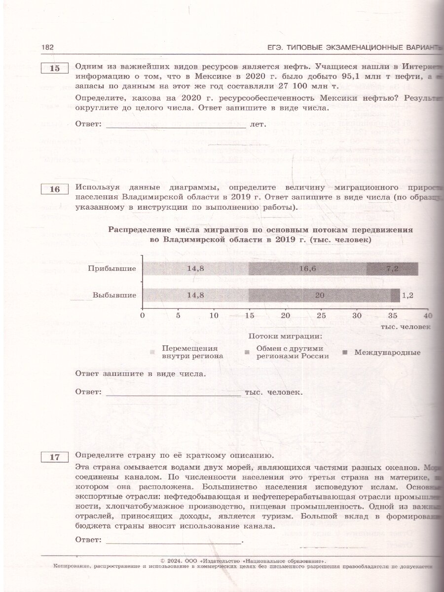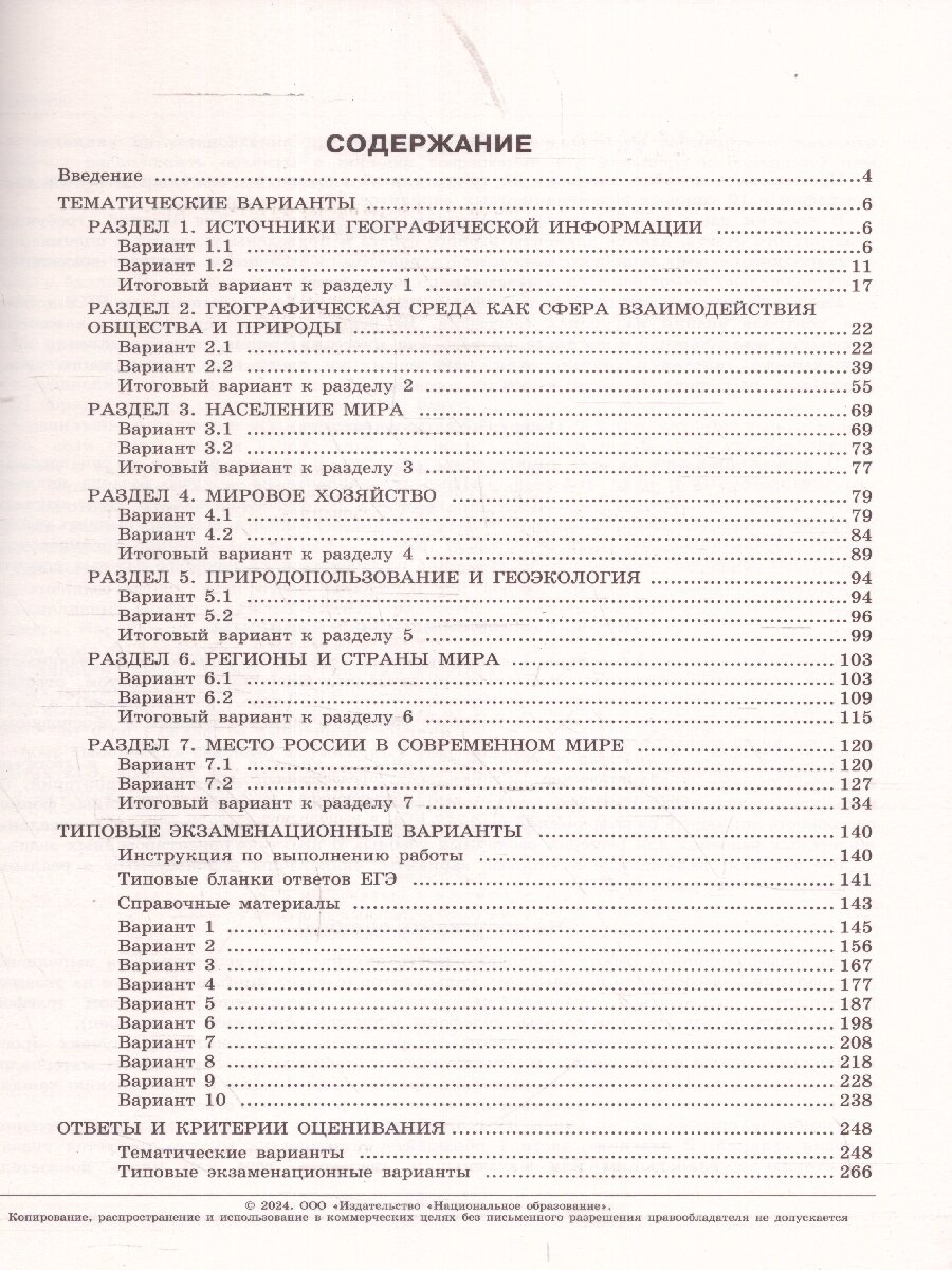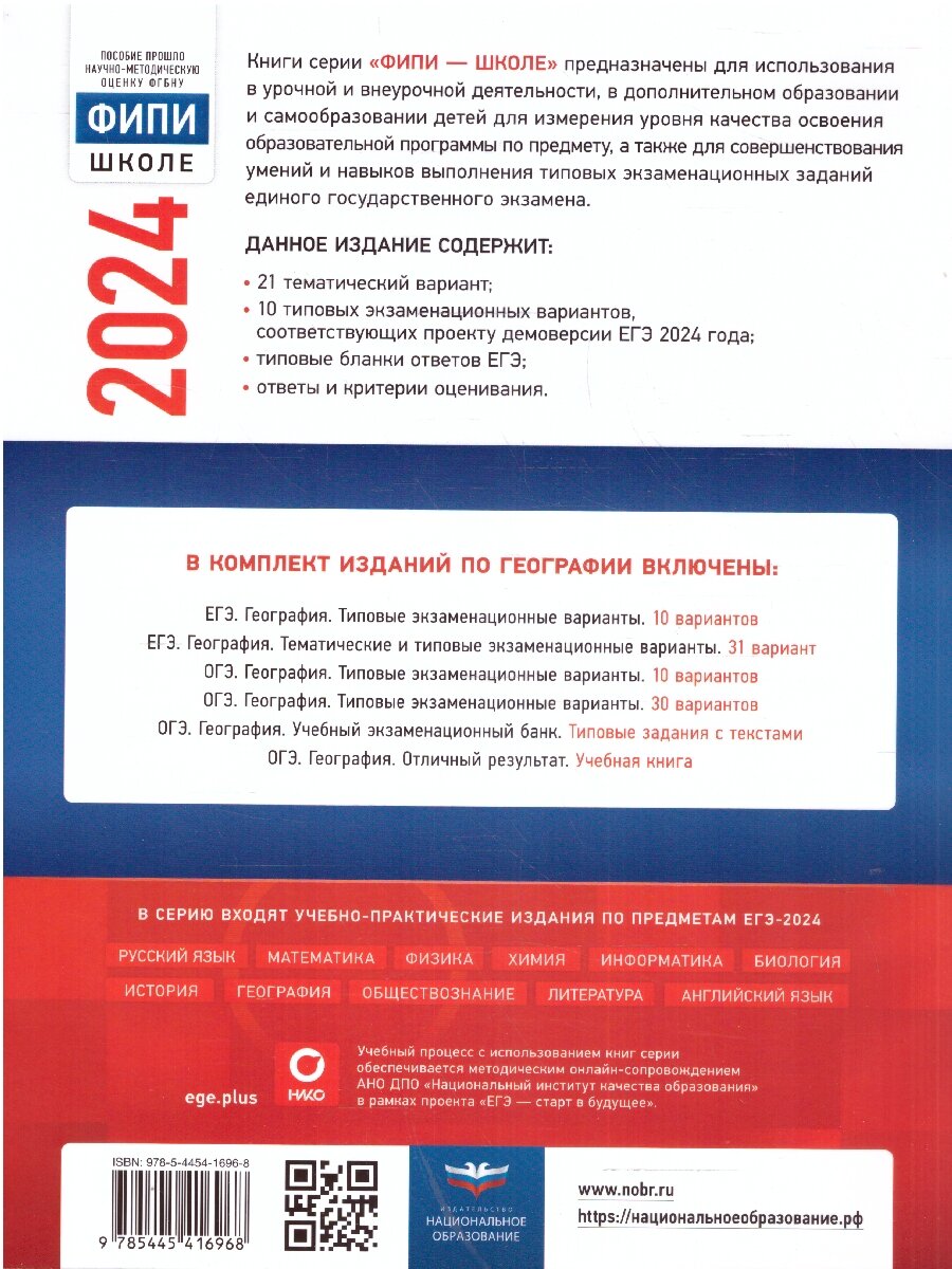 • 10 типовых экзаменационных вариантов, составленных в соответствии с проектом демоверсии КИМ ЕГЭ по географии 2024 года;