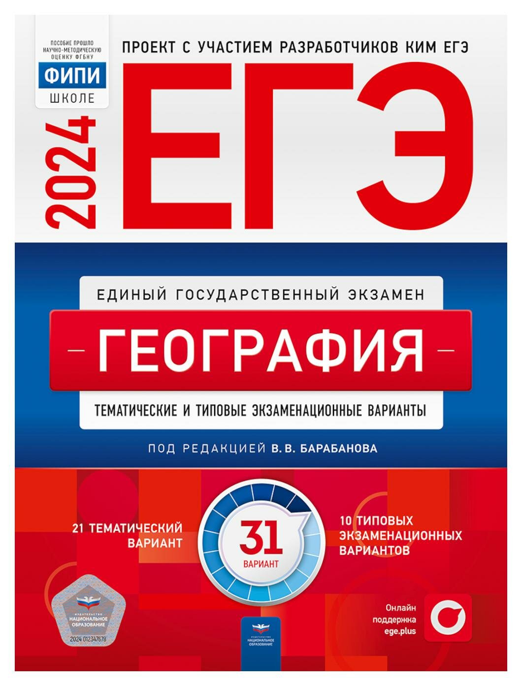 ЕГЭ-2024. География: тематические и типовые экзаменационные варианты: 31 вариант (Барабанов Вадим Владимирович, Дюкова Светлана Евгеньевна, Амбарцумова Элеонора Мкртычевна); Национальное образование, 2024
