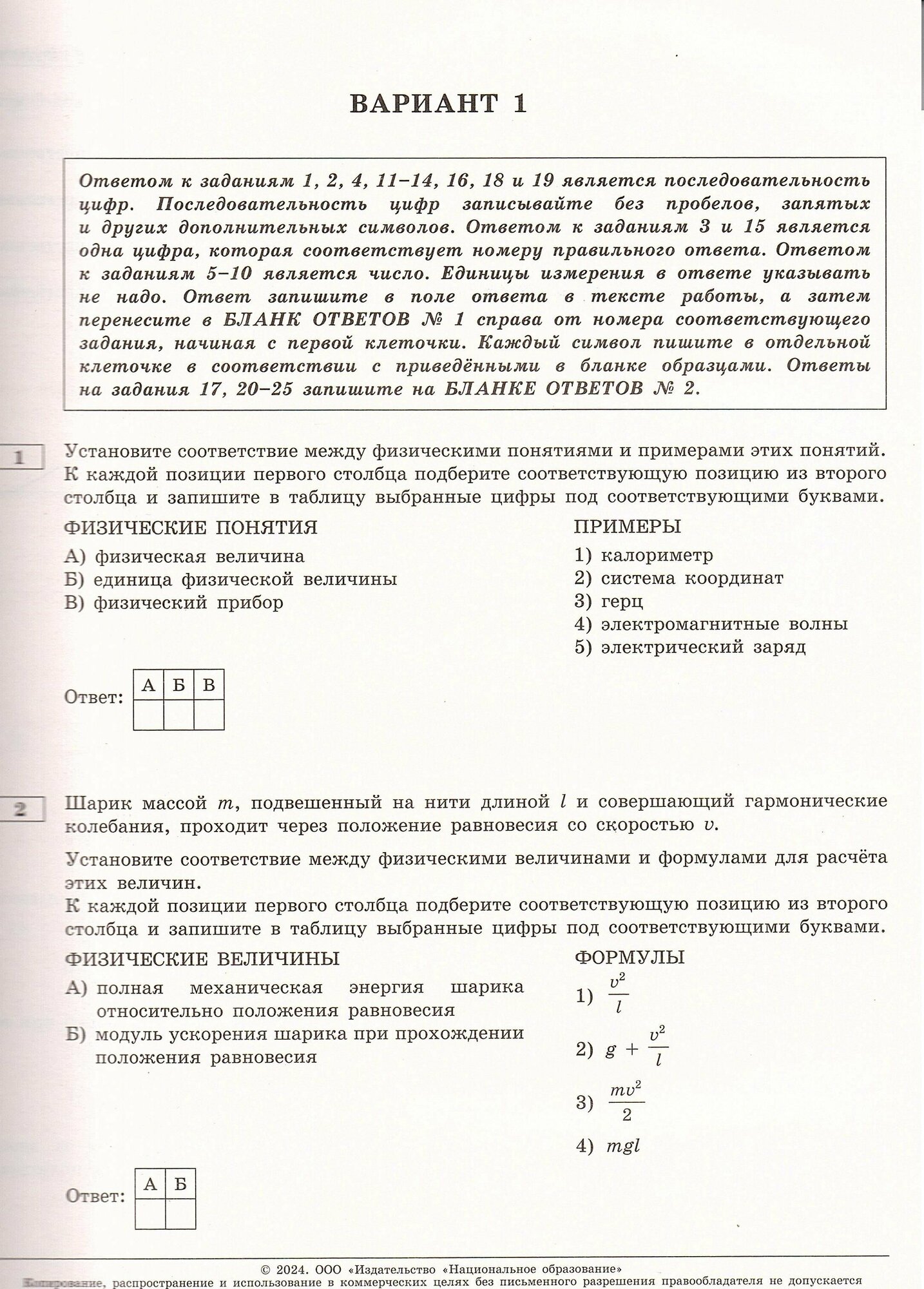 ОГЭ-2024. Физика: типовые экзаменационные варианты: 30 вариантов (Под ред. Камзеевой Е.Е.); Национальное образование, 2024