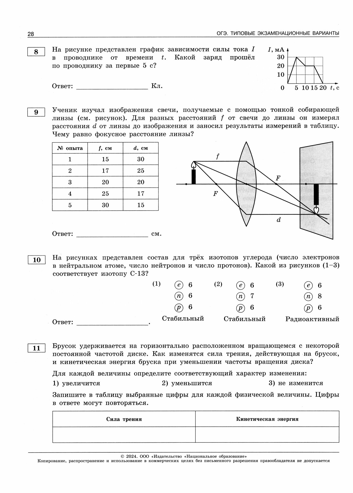 • 30 типовых экзаменационных вариантов, составленных в соответствии с проектом демоверсии КИМ ОГЭ по физике 2024 года;