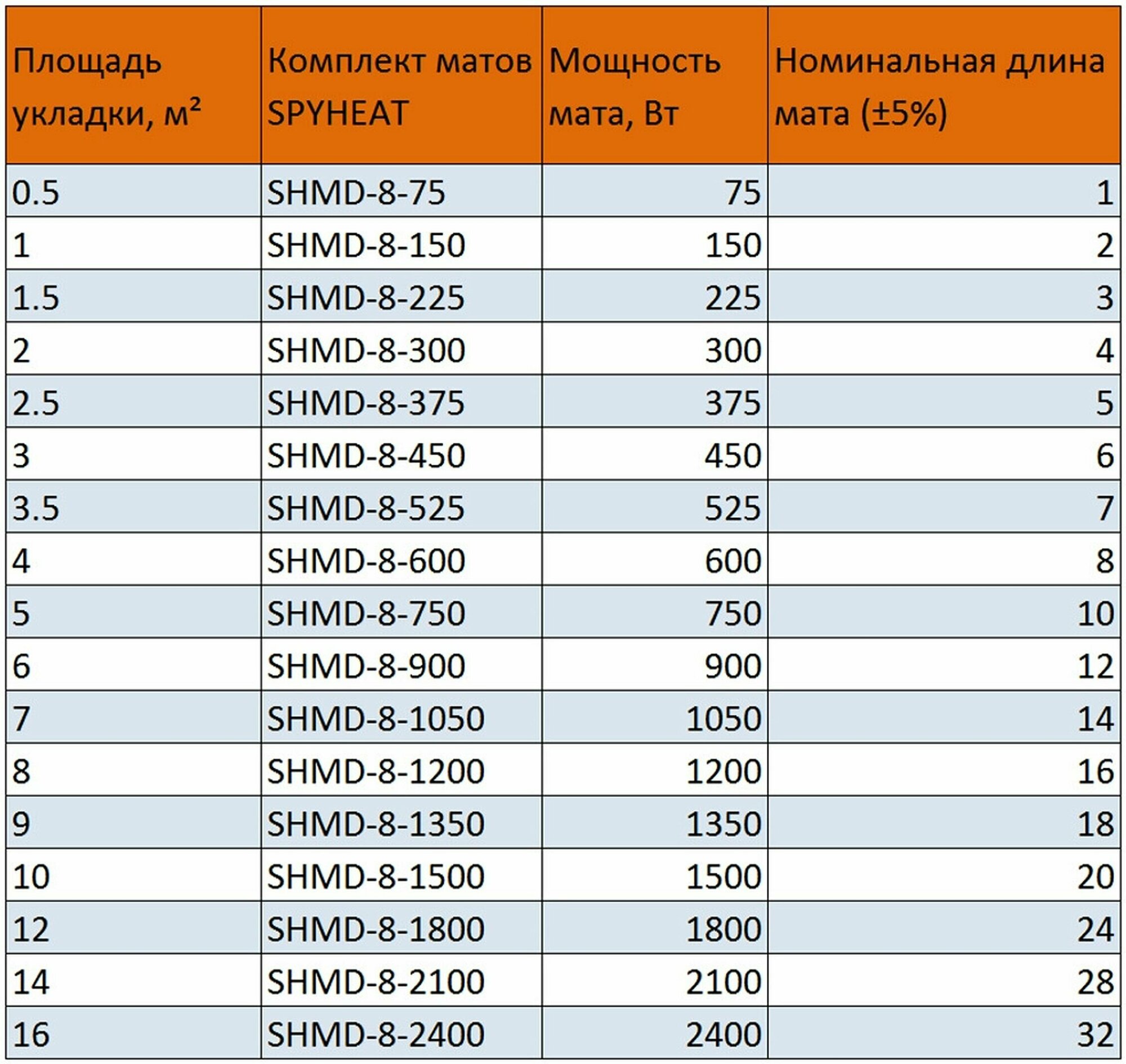 Комплект "Теплый пол" Spyheat Классик SHMD-8-150, 1 кв.м