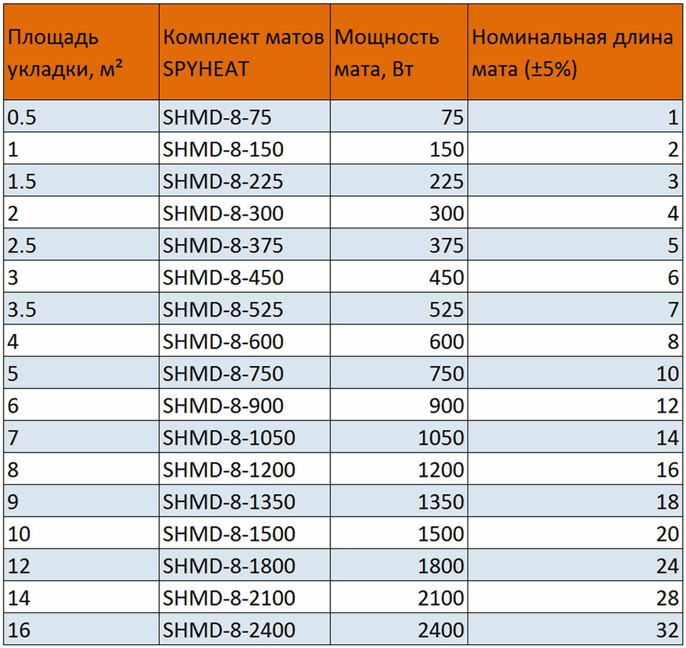 Комплект "Теплый пол" Spyheat Классик SHMD-8-450, 3,0 кв.м