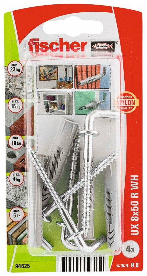 Дюбель Fischer UX 8X50 универсальный с прямым крюком 4шт.