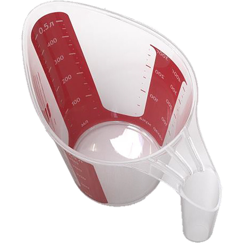 Шкала снаружи под углом позволяет увидеть, сколько жидкости уже вылито и сколько еще осталось. Внутренняя мерная шкала - удобно смотреть сверху.