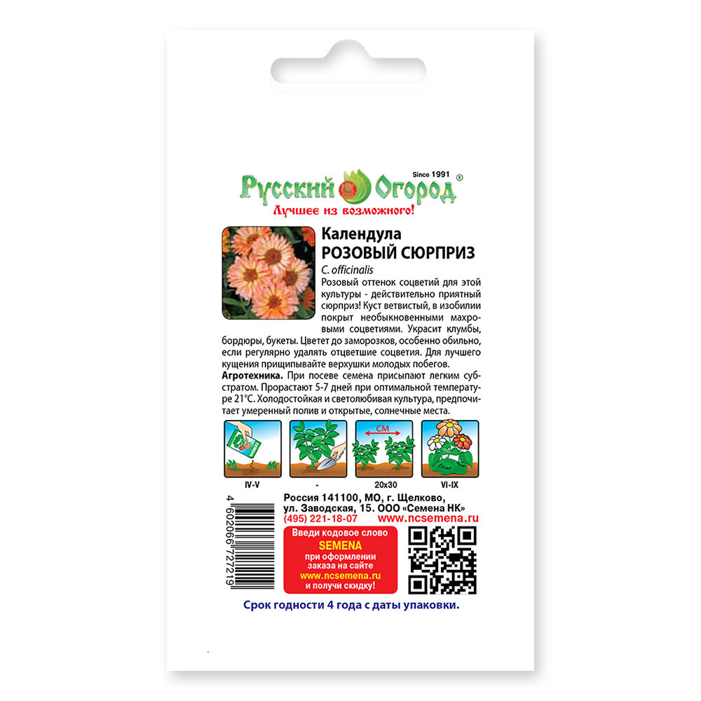 - Календула Розовый сюрприз (Гавриш), 0,5 г обзор 00001404 бренд Гавриш производитель Гавриш (Россия)