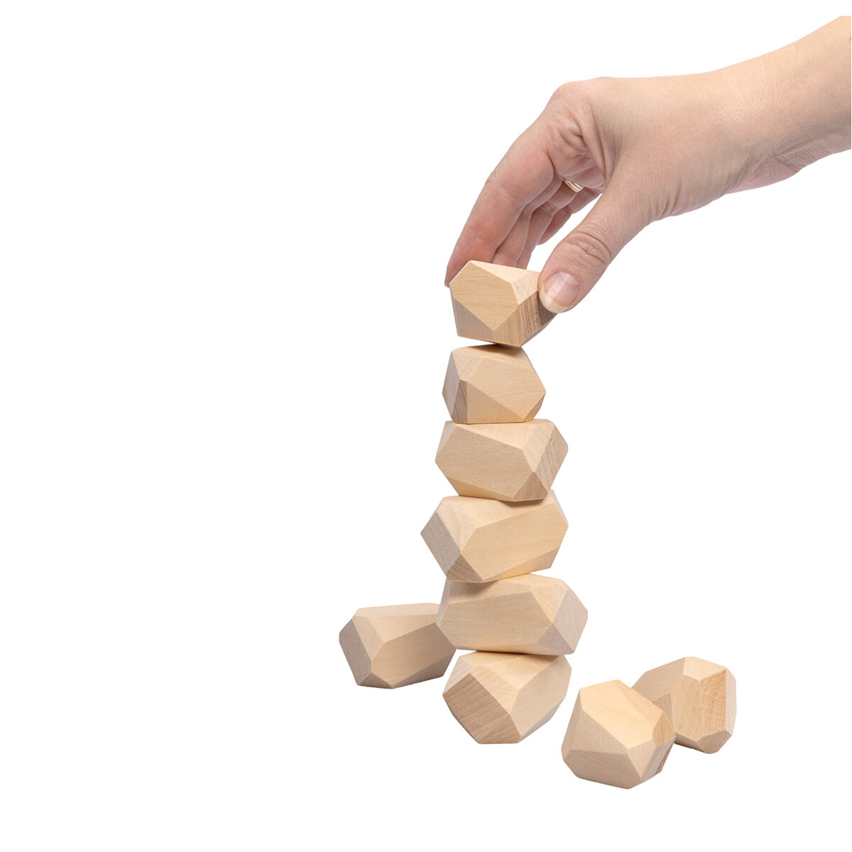 Незамысловатое название этой игры переводится как “гора камней”. Действительно, ведь открывая коробку вы обнаруживаете в ней девять деревянных фигур разнообразной формы. Что с ними делать? Всё просто. Дженгу знаете? Тут принцип похожий – необходимо выложить камни друг на друга и построить высокую башню. Но в “Туми иши” можно играть одному, вытаскивать из основания ничего не нужно, главное, чтобы башня из всех девяти камней уверенно стояла и сохраняла баланс.