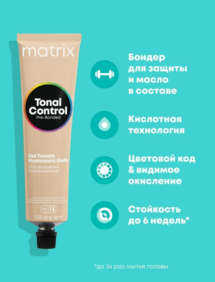Самые предсказуемые гелевые тонеры среди красителей Matrix. Не поднимают натуральную базу. Идеально подходят для тонирования осветлённых волос в техниках шатуш, балаяж, 4D Блонд и других. Без аммиака. Стойкость тонирования до 6 недель или до 24 раз мытья головы. Бондер в каждом тюбике защищает внутреннюю структуру волос – так вы сохраняете качество волос окрашивание за окрашиванием. Масло персиковых косточек - выполняет ухаживающую и увлажняющую функцию.