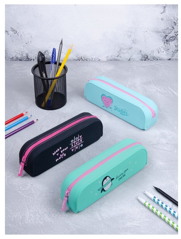 Пенал школьный мягкий Berlingo Penguin dream из высококачественного силикона размером 200*60*50 мм имеет одно отделение. Пенал упакован в пластиковую коробку с европодвесом. Поставляется без наполнения.