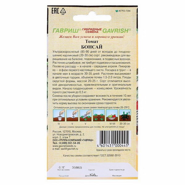 Модель: Семена Гавриш Томат Бони ММ 0.05 г