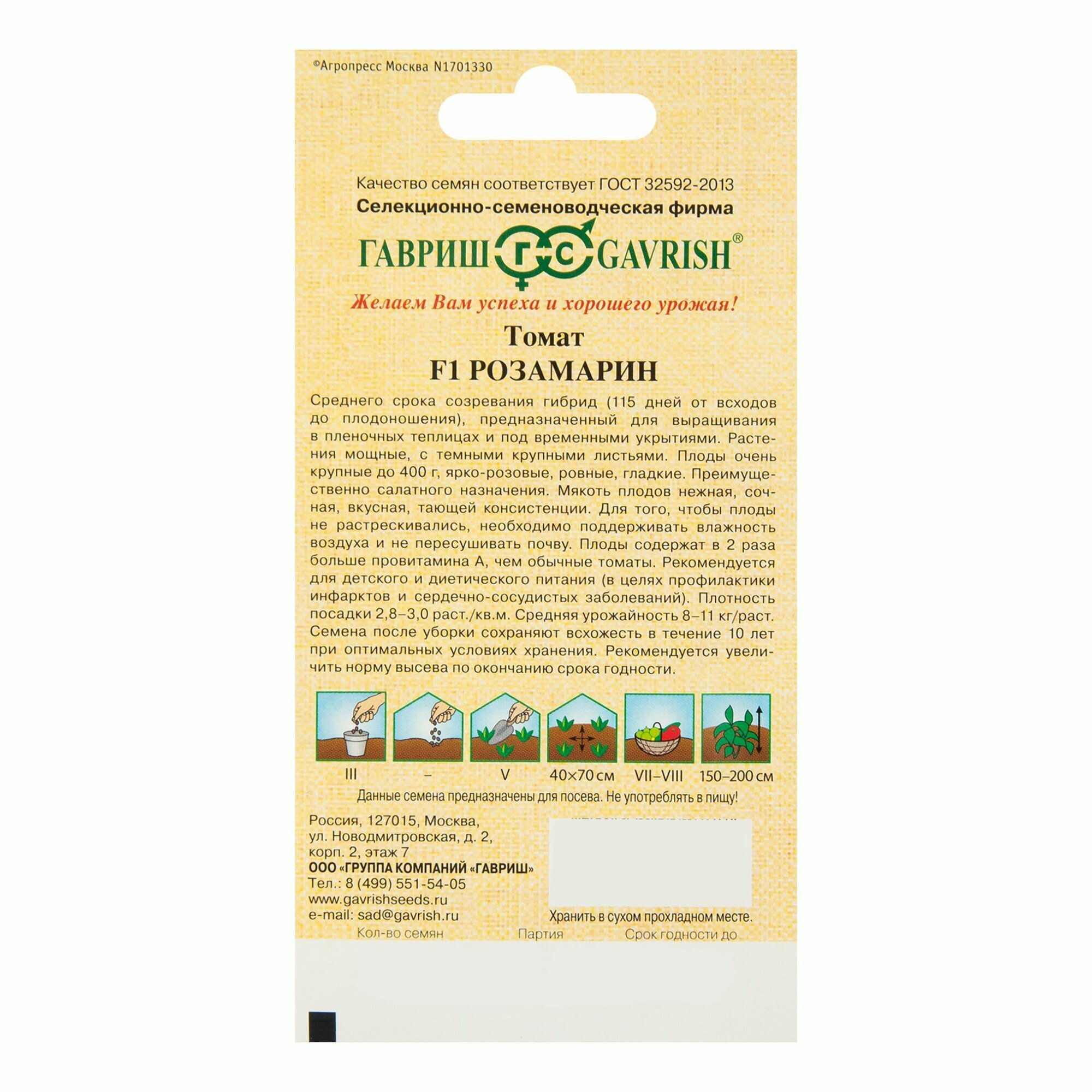Тип товара: Семена овощей и ягод