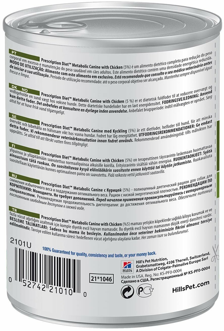 Полноценный и сбалансированный ветеринарный влажный корм для собак Hills Prescription Diet Canine Metabolic Advanced Weight Solution создан специально для кормления взрослых собак с избыточным весом, и направленный на снижение веса за счет реакции с метаболизмом собаки.
