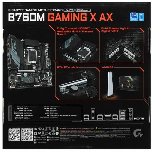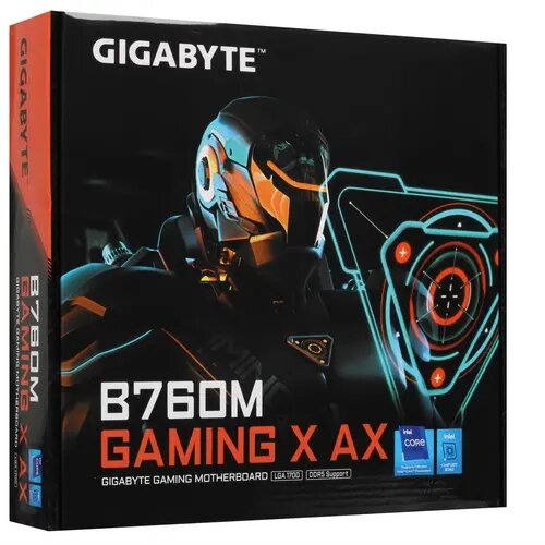 Материнская плата Gigabyte B760M GAMING X AX, гнездо процессора LGA 1700, чипсет Intel B760, форм-фактор mATX, звук AC`97 8ch(7.1), RAID, слоты 1xPCI-E 3.0 x16, разъемы 2.5Gg+HDMI