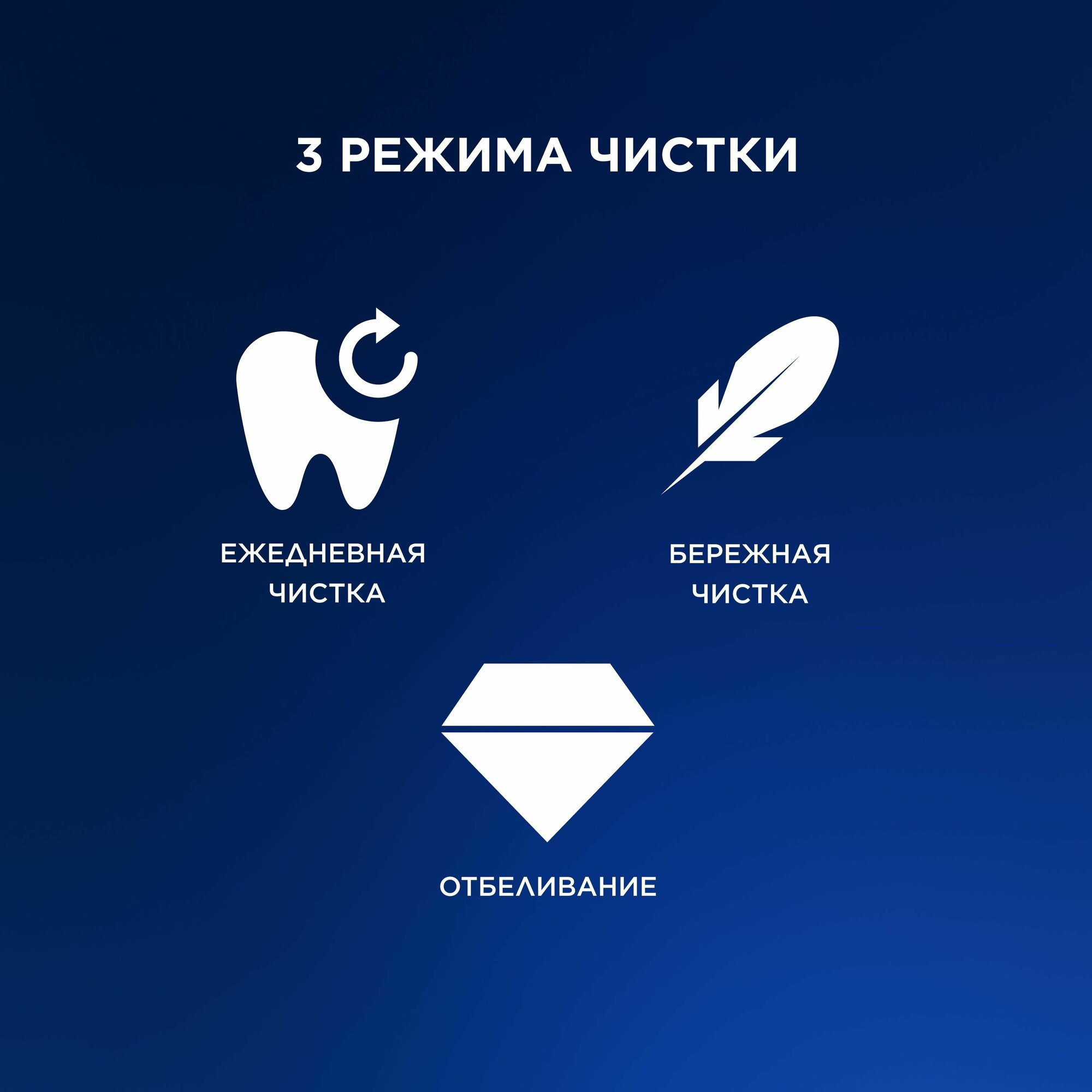 Откройте для себя Oral-B Pro Series 1 – электрическую зубную щетку от марки 1, используемой стоматологами во всем мире*. Круглая насадка Oral-B охватывает каждый зуб, удаляя до 100% больше зубного налета** даже в труднодоступных местах. Встроенный датчик давления защищает десны, останавливая пульсацию при чрезмерном нажатии, а двухминутный таймер чистки, уведомляющий каждые 30 секунд о необходимости сменить зону чистки зубов, поможет с легкостью соблюдать рекомендации стоматологов. Особенности модели: • 3 РЕЖИМА ЧИСТКИ: ежедневная, бережная и отбеливание • СЕНСОРНЫЙ ДАТЧИК ДАВЛЕНИЯ НА ДЕСНЫ отключает пульсацию при чрезмерном нажатии на щетку • ИНДИКАТОР УРОВНЯ ЗАРЯДА светодиодный индикатор заряда сигнализирует о необходимости зарядить зубную щетку Комплектация: электрическая зубная щетка Oral-B Pro Series 1, сменная насадка Oral-B Cross Action с щетинками, меняющими цвет от зеленого до желтого, подсказывая, когда ее пора заменить, 1 зарядное устройство, гарантийный талон и инструкция. *На основании международных опросов P&G, проводимых среди репрезентативной выборки стоматологов регулярно. **По сравнению с обычной ручной зубной щеткой