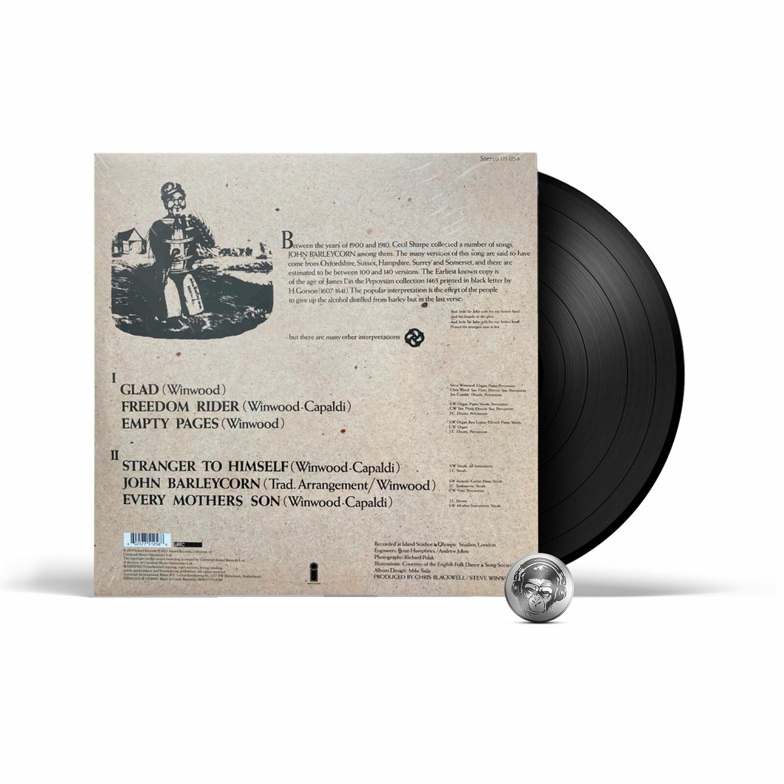 A1. GladA2. Freedom RiderA3. Empty PagesB1. Stranger To HimselfB2. John BarleycornB3. Every Mother's Son"John Barleycorn Must Die" - ремастированное переиздание студийного альбома коллектива Traffic, первоначально выпущенного в 1970 году. Альбом достиг #5 в Billboard 200 и получил статус статус золотого (первый "золотой диск" группы). Сингл "Empty Pages" с этого альбома достиг #74 в Billboard Hot 100. На родине музыкантов, в Великобритании альбом достиг #11 в UK Albums Chart. Релиз представлен на черном 180-граммовом виниле. Traffic - британская рок-группа из Бирмингема, образованная в апреле 1967 года Стивом Уинвудом, Джимом Капальди, Крисом Вудом и Дэвидом Мэйсоном. В начале творческого пути группа исполняла психоделический рок, разнообразив своё звучание за счёт использования таких инструментов, как меллотрон, клавесин, ситар, различных язычковых инструментов, а также использовании элементов джаза и музыкальной импровизации. Первый успех группе принесли синглы "Paper Sun", "Hole in My Shoe" и "Here We Go Round the Mulberry Bush" (1967 год). В декабре того же года вышел и первый долгоиграющий альбом группы "Mr. Fantasy", достигший #16 в UK albums chart и #88 в Billboard 200. В 1969 году группа распалась, Стив Уинвуд присоединился к недолговечной супергруппе Blind Faith, но уже на следующий год музыканты воссоединилась вновь и выпустили свой четвёртый студийный альбом "John Barleycorn Must Die". С этого момента состав группы постоянно менялся до тех пор, пока она окончательно не распалась в 1974 году. Частичное воссоединение с Уинвудом и Капальди произошло в 1994 году. В 2004 году группа Traffic была занесена в Зал славы рок-н-ролла.