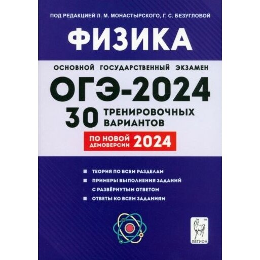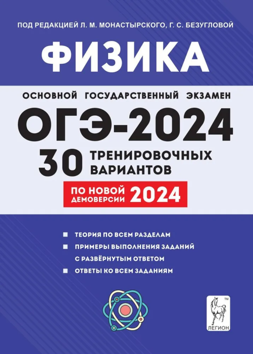 Физика. 9 класс. Подготовка к ОГЭ-2024. 30 тренировочных вариантов по демоверсии 2024 года (Монастырский Лев Михайлович, Безуглова Галина Сергеевна, Джужук Игорь Иванович); Легион, 2023