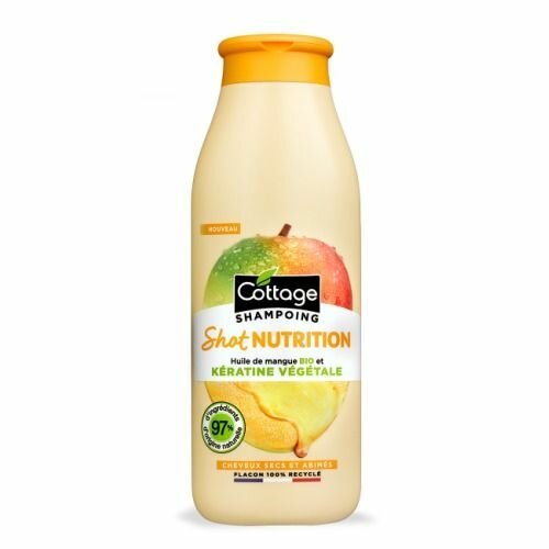 Cottage Шампунь для сухих и поврежденных волос Заряд питания с органическим маслом манго и растительным кератином 250 мл. Шампунь с растительным кератином и органическим маслом манго специально разработан для сухих и поврежденных волос. Состав шампуня на 97% состоит из натуральных ингредиентов. Глубоко очищает кожу головы и волосы, способствует восстановлению и укреплению внутренней структуры волос, интенсивно питает и увлажняет.