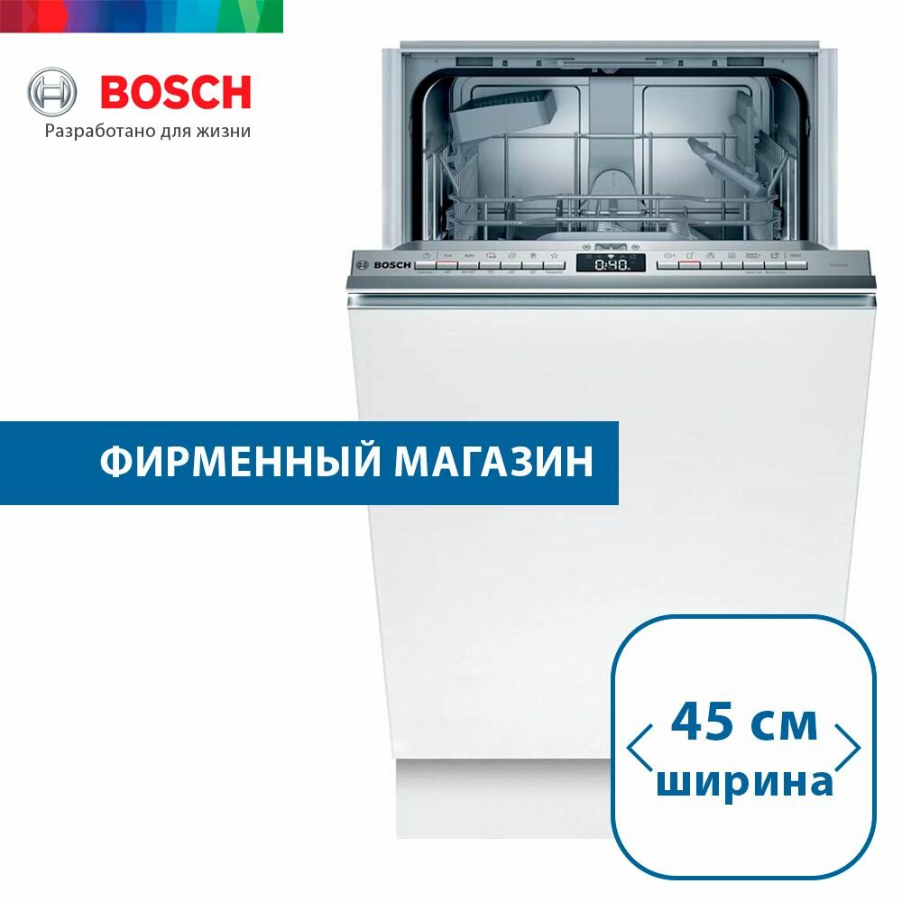 Serie 4. Посудомоечная машина 45 см, полновстраиваемая. Вместимость: 9 комплектов посуды. 6 программ, EfficientDry, Intensive Zone, SpeedPerfect Plus. Система Home connect. Теплообменник. DosageAssist. MachineCare. Гидравлическая система ActiveWater. DuoPower – двойное вращающееся коромысло в верхнем коробе. Технология «Бережного мытья стекла». AquaSensor®, Датчик загрузки. EcoSilence Drive Таймер запуска 1–24 ч. . InfoLight