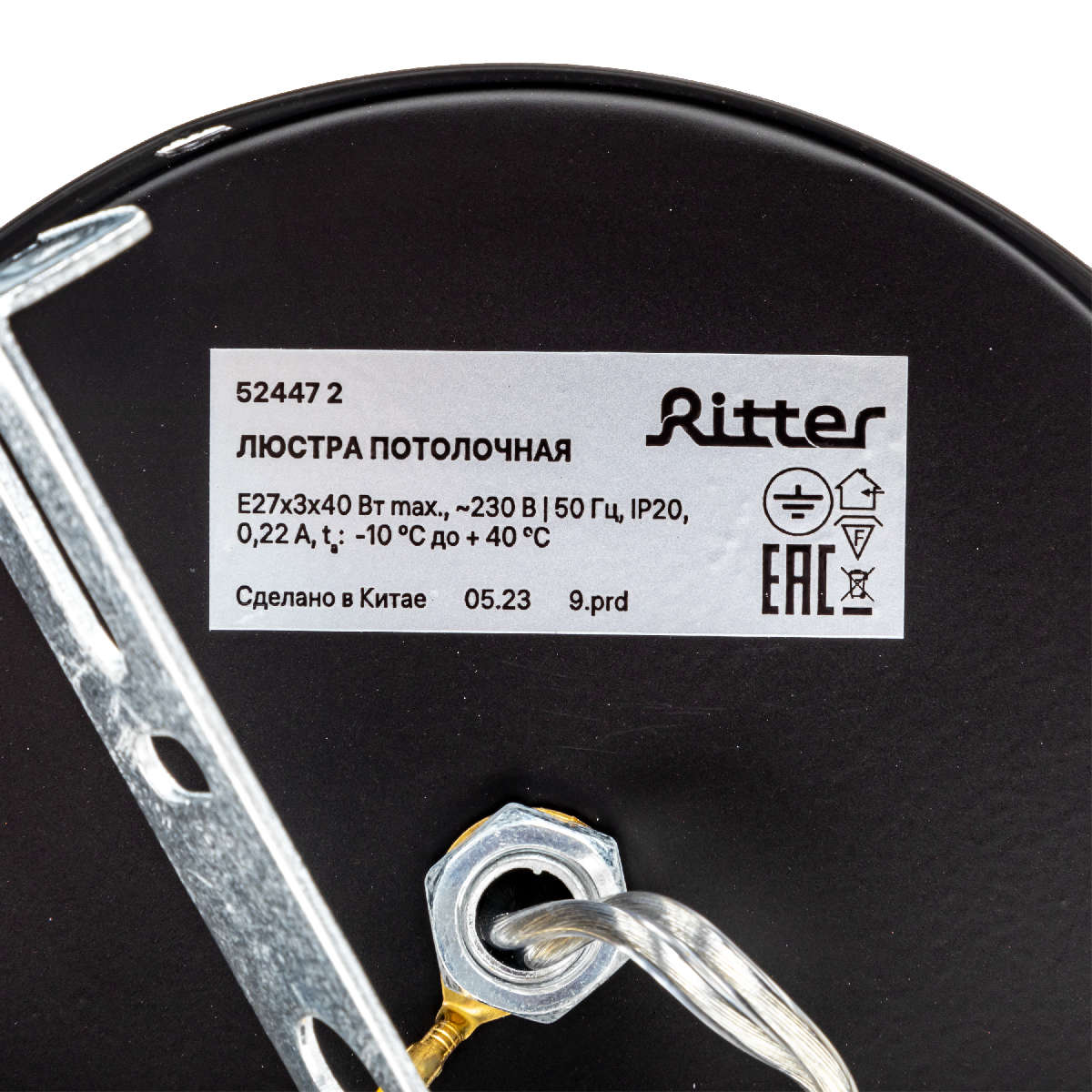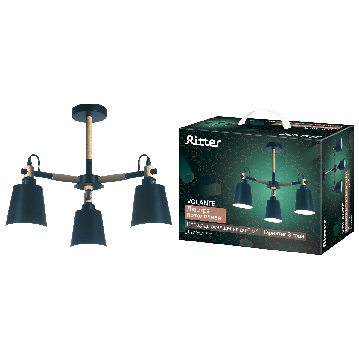 Люстра потолочная «Volante» 52447 Е27 3 лампы цвет черное дерево RITTER