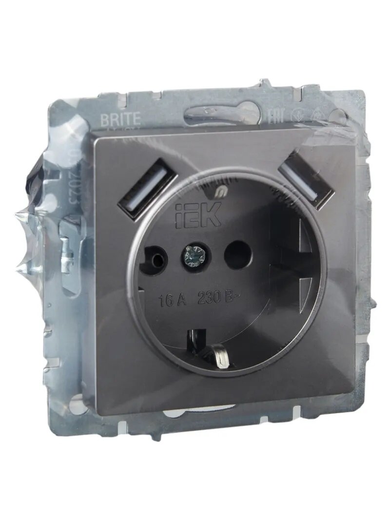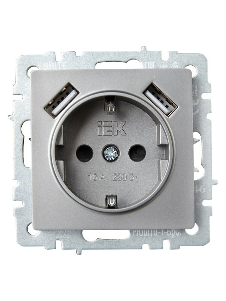 Розетка USB встраиваемая IEK Brite РЮш10-1-БрС с заземлением цвет сталь