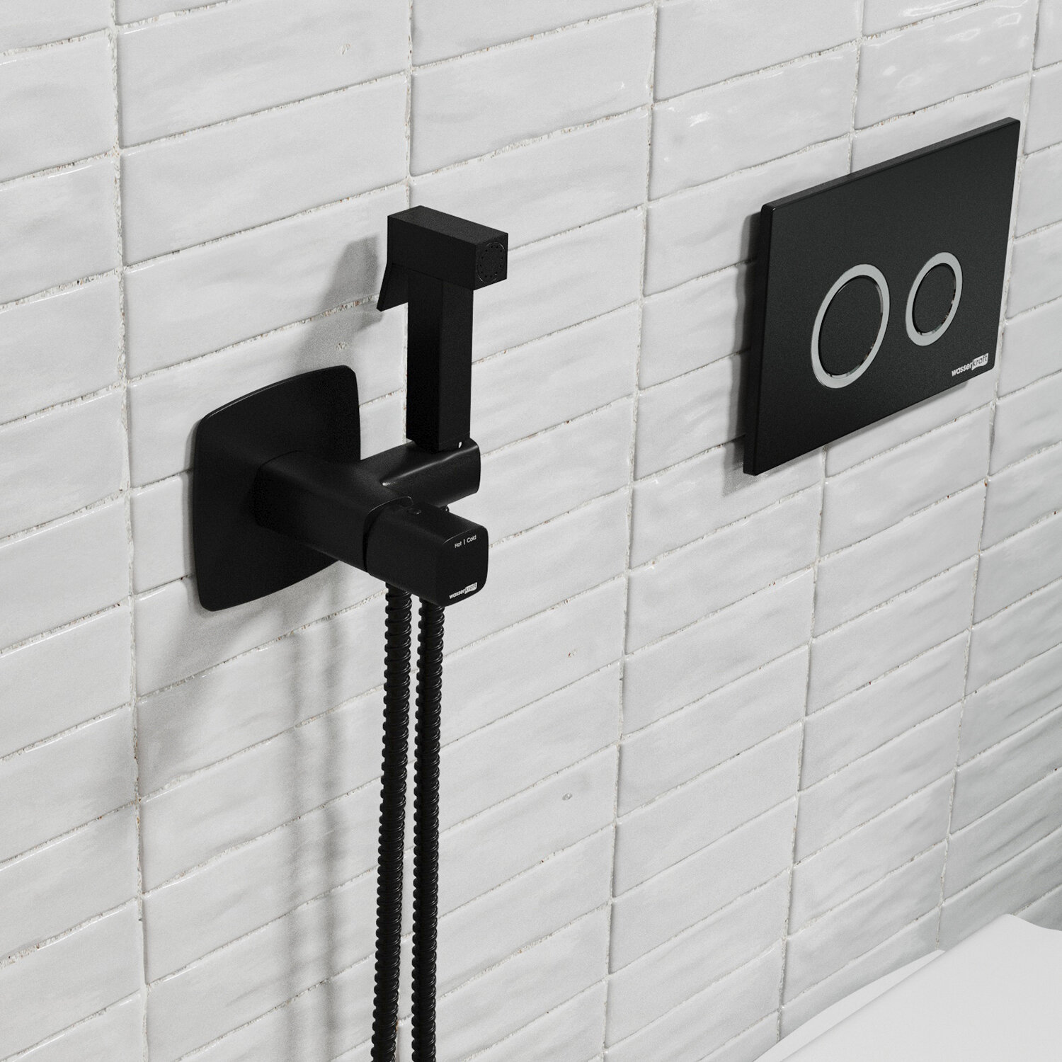 Керамический картридж 25 мм, Wanhai. Входит в комплект: металлический шланг 1200 мм. Гигиеническая лейка из латуни. Набор для монтажа. Материал: латунь. Покрытие: черный Soft-touch.