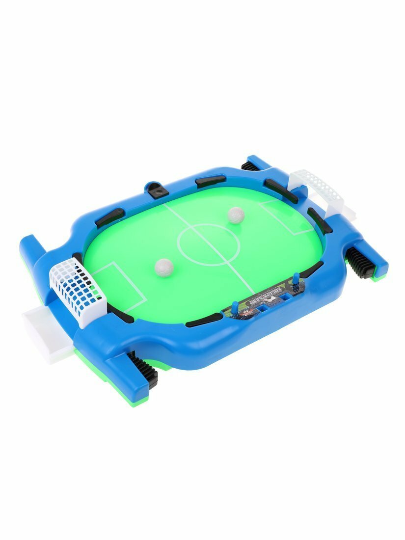 В конструкции предусмотрены ручки для игроков с каждой стороны. При нажатии на ручки двигаются «рычажки» - с их помощью можно направлять мяч в ворота соперника! А чтобы не забыть счет игры, нажимайте на кнопочки табло, расположенные на корпусе игрушки.