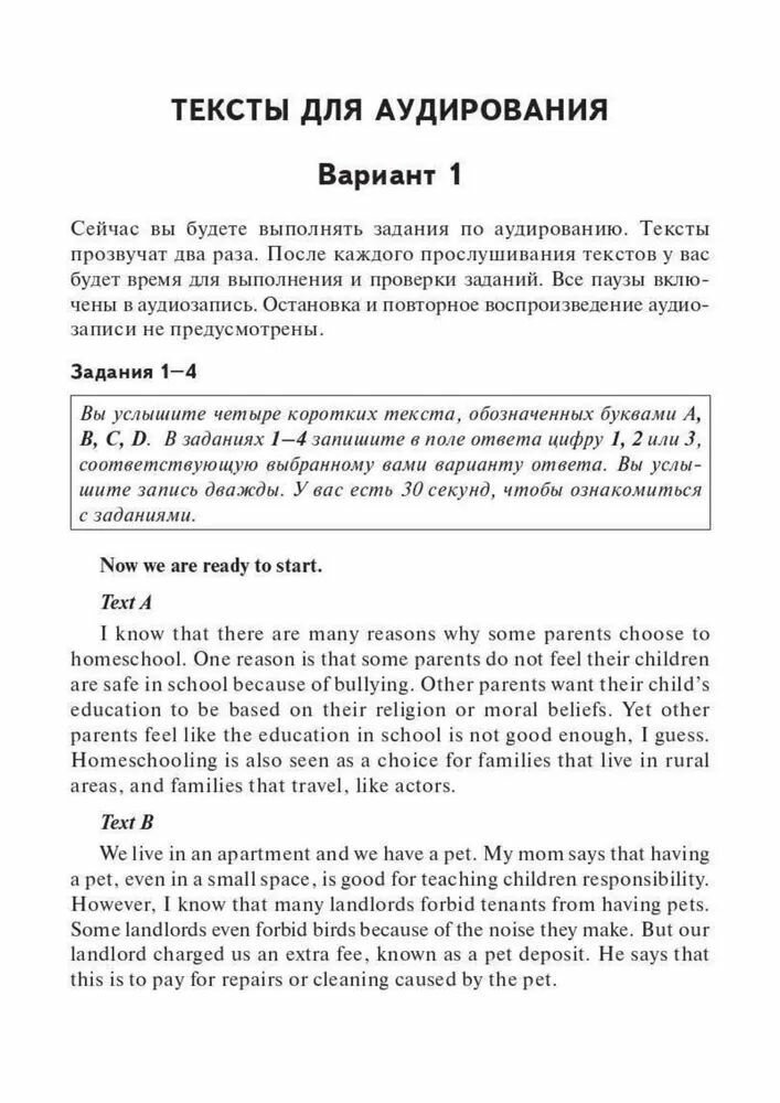 - тексты для аудирования;
