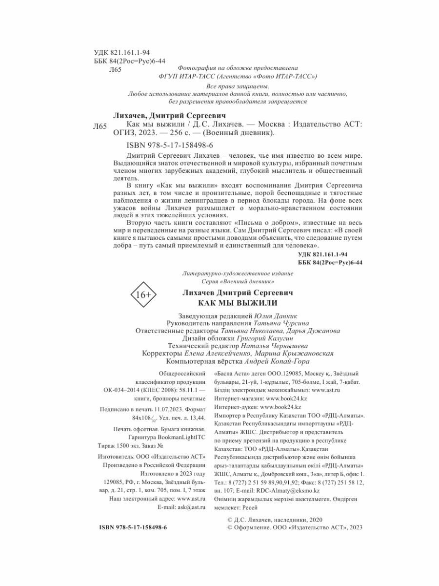 Книга: Как мы выжили (Лихачев Дмитрий Сергеевич); ИЗДАТЕЛЬСТВО "АСТ", 2023