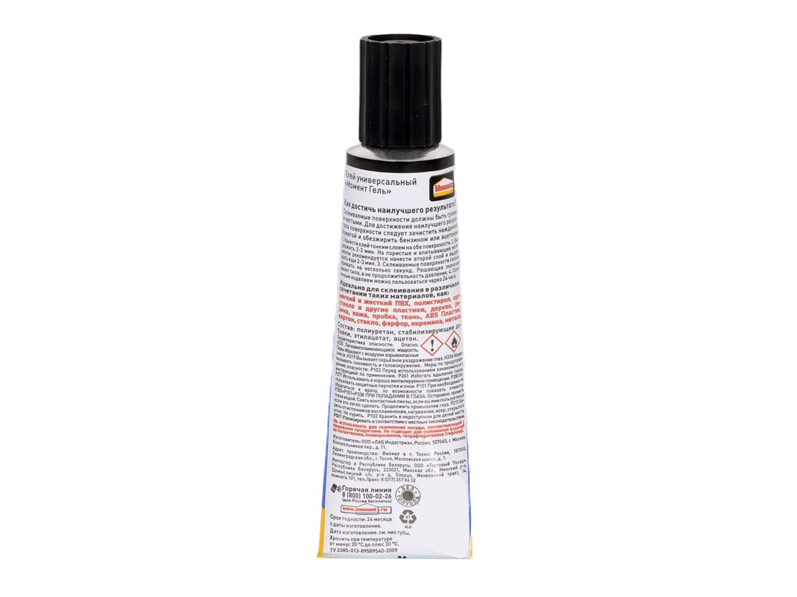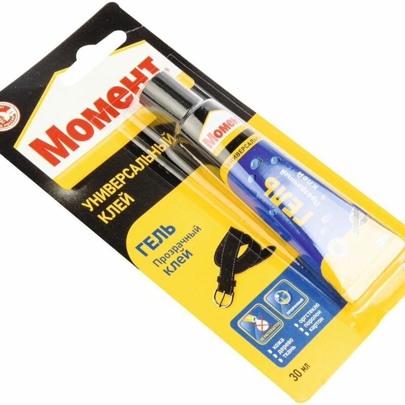 Надежный клей Момент "Гель" идеально подходит для комбинационного склеивания мягкого и жесткого ПВХ, полистирола, оргстекла и других пластиков, дерева, резины, кожи, пробки, ткани, поролона, бумаги, картона, стекла, фарфора, керамики, вспененных материалов, металлов и многих других материалов. Универсальный водостойкий и морозостойкий контактный клей-гель, на основе растворителя. Благодаря гелеобразной форме не растекается и не капает, эластичен. Идеален для наклонных поверхностей и поверхностей большой площади. Не подходит для склеивания посуды, контактирующей с пищей, стиропора, полиэтилена и полипропилена.